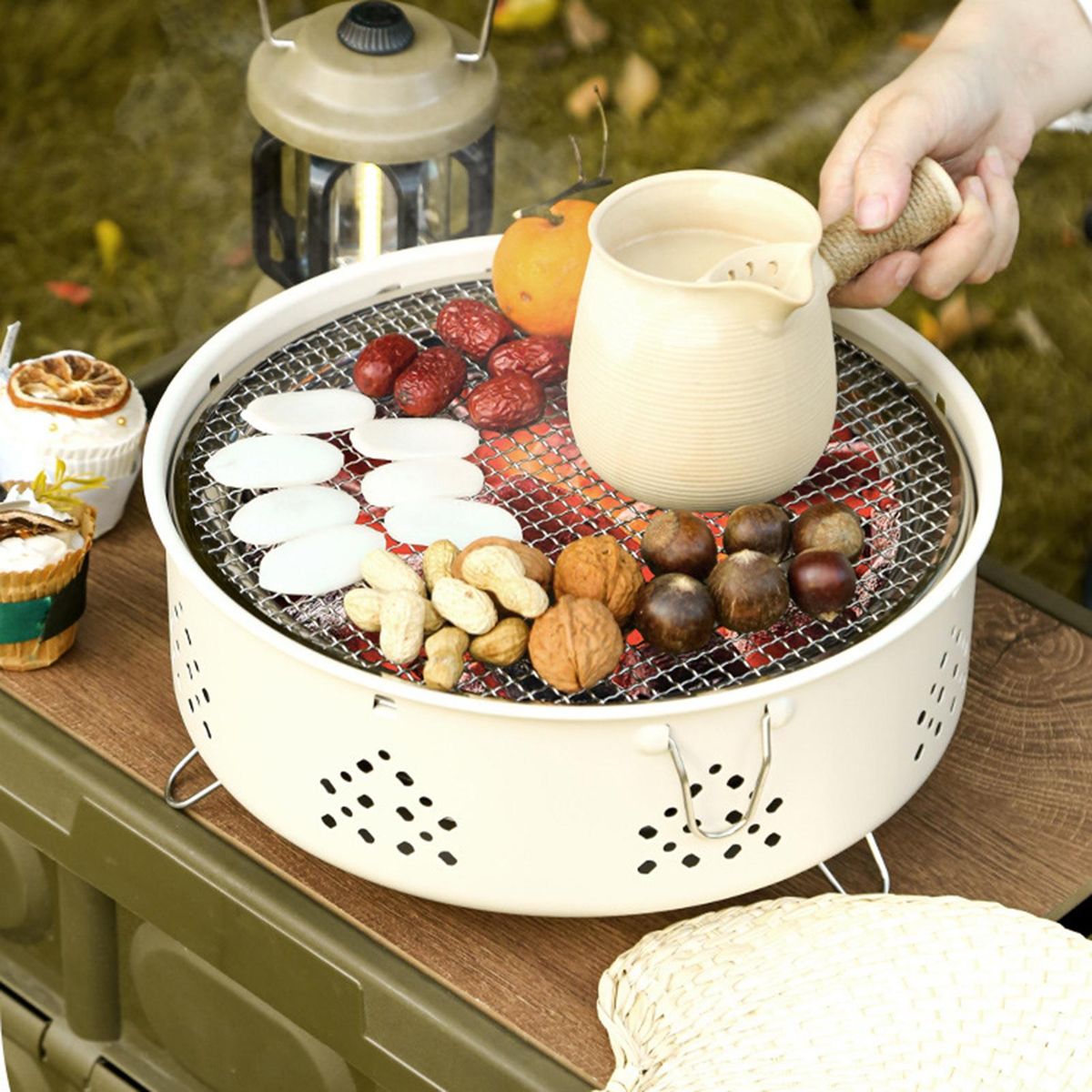 Our grill features ventilation on all sides, ensuring that the firepower burns more vigorously and resulting in a more uniform heating area. equipped with a large-capacity charcoal basin and air vents on all sides, our grill utilizes physics to keep the charcoal fully burned. this means that you'll enjoy strong firepower that is not easily extinguished, allowing you to cook your favorite dishes to perfection every time.