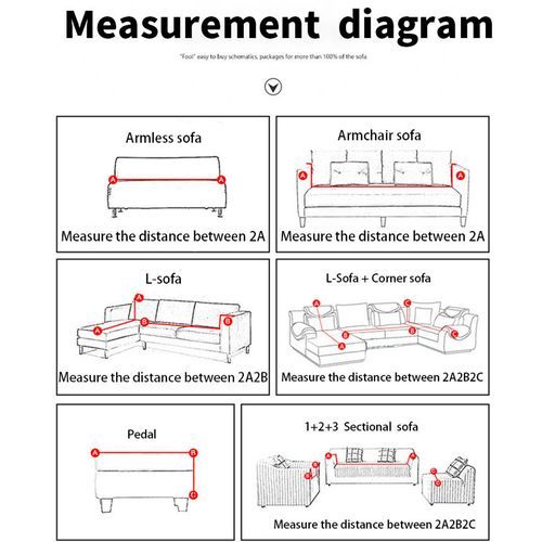 Distance between the ends of the sofa 90-140cm (plus armrest height and width) - single seatDistance between the ends of the sofa 140-185cm (plus the height and width of the armrests) - double seatsDistance between the ends of the sofa 185-230cm (plus the height and width of the armrests) - triple seatsDistance between the ends of the sofa 230-300cm (plus armrest height and width) - four seatsCushion cover: 45cm*45cm