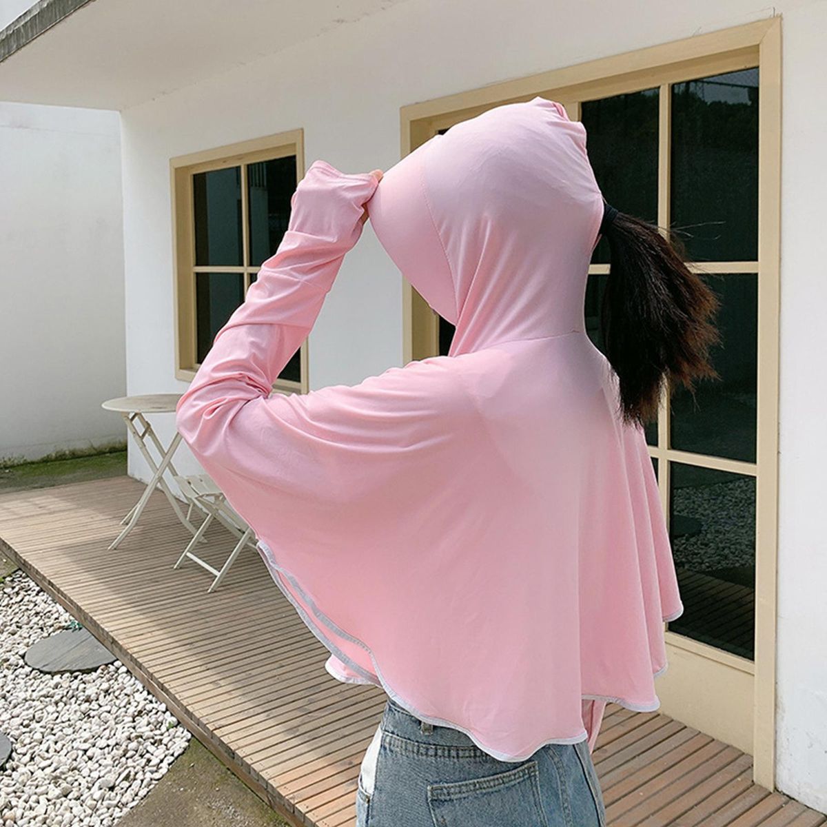 Womens summer UV protection long sleeve hooded coat with sun visor hatHigh quality UV sun protective fabric, durable, lightweight, breathableLong Sleeve zipper hoodied, 360 degree design protection, great for all types of outdoor activitiesUniquely designed ultimate sun protection. Conveniently slip on in seconds to protect , neck and facePerfect for use at spring, summer, autumn when travel around, do sports such as outdoor cycling, riding, hiking, camping, mountaineering, beach, holiday walking, etc