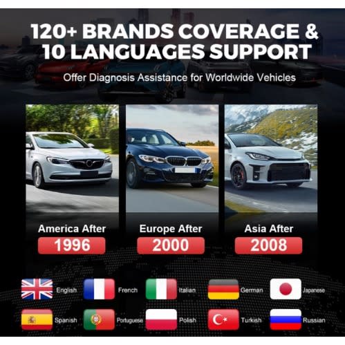 One Scanner is Enough! ThinkDiag Mini car scanner can rapidly identify vehicle, scan the vehicle systems automatically, and generate vehicle detection reports. It's compatible with over 126 different vehicle brands and 200000+ cars worldwide after 1996 on US, Europe, Asia, including 12V cars, SUVs, light duty truck, pickup, minivans. NOTE: It's NOT bidirectional scanner.Use Anytime, Anywhere ThinkDiag Mini car diagnostic scanner built-in 11 languages and has an exclusive ThinkDiag App developed that unlocks all features, and updates the latest vehicle data every year. This portable obd2 scanner is a great choice to keep in your car. No matter you are at home or on travel, you can diagnose your car with this plug & play App at any time..Great Technical Support ThinkDiag Mini car scan tool offers lifetime free updates and warranty.