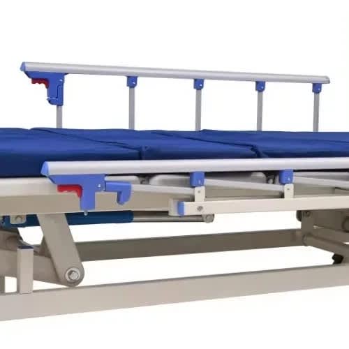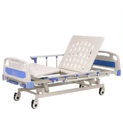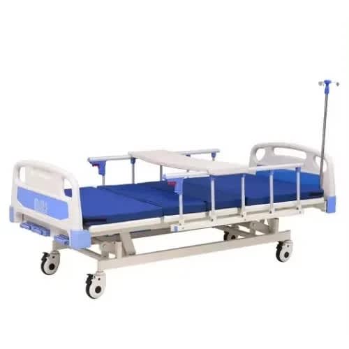 is also called three functions manual hospital bed. The main function of the is its back adjustment, leg adjustment and height adjustment. 3 crank hospital bed can add on-bed infusion poles and over-bed tables and other related basic configurations.