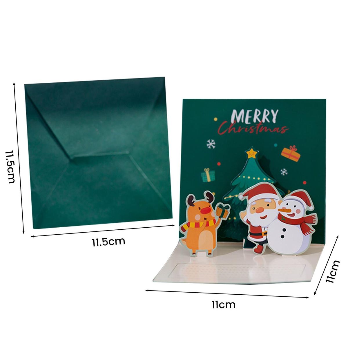 Featuring an adorable cartoon, three-dimensional design showcasing santa claus, snowman, elk, and other festive shapes, this card is guaranteed to bring joy to anyone who receives it. the vibrant images and christmas-themed elements create a powerful festive atmosphere, while the bright colors and clear patterns make it visually captivating. .