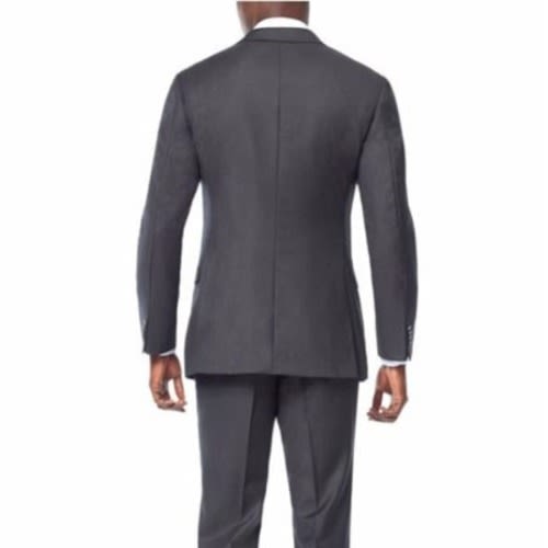 Perfectly pairing performance with style, this handsomely tailored Traveler suit features a unique fabric technology that maintains the optimum microclimate for your body. it removes moisture at the vapor stage before sweat can form. 37.5 acts like a thermostat by removing moisture when you are hot and retaining warmth when cold. It absorbs and traps odor molecules that are washed away when cleaned. Notch lapel, two button, side vents. Fully lined jacket, flat-front pants are lined to the knee and have an unfinished hem. 70% wool, 27% polyester, 3% spandex. Dry clean only. Jacket 42 Regular |Pant 36 Waist