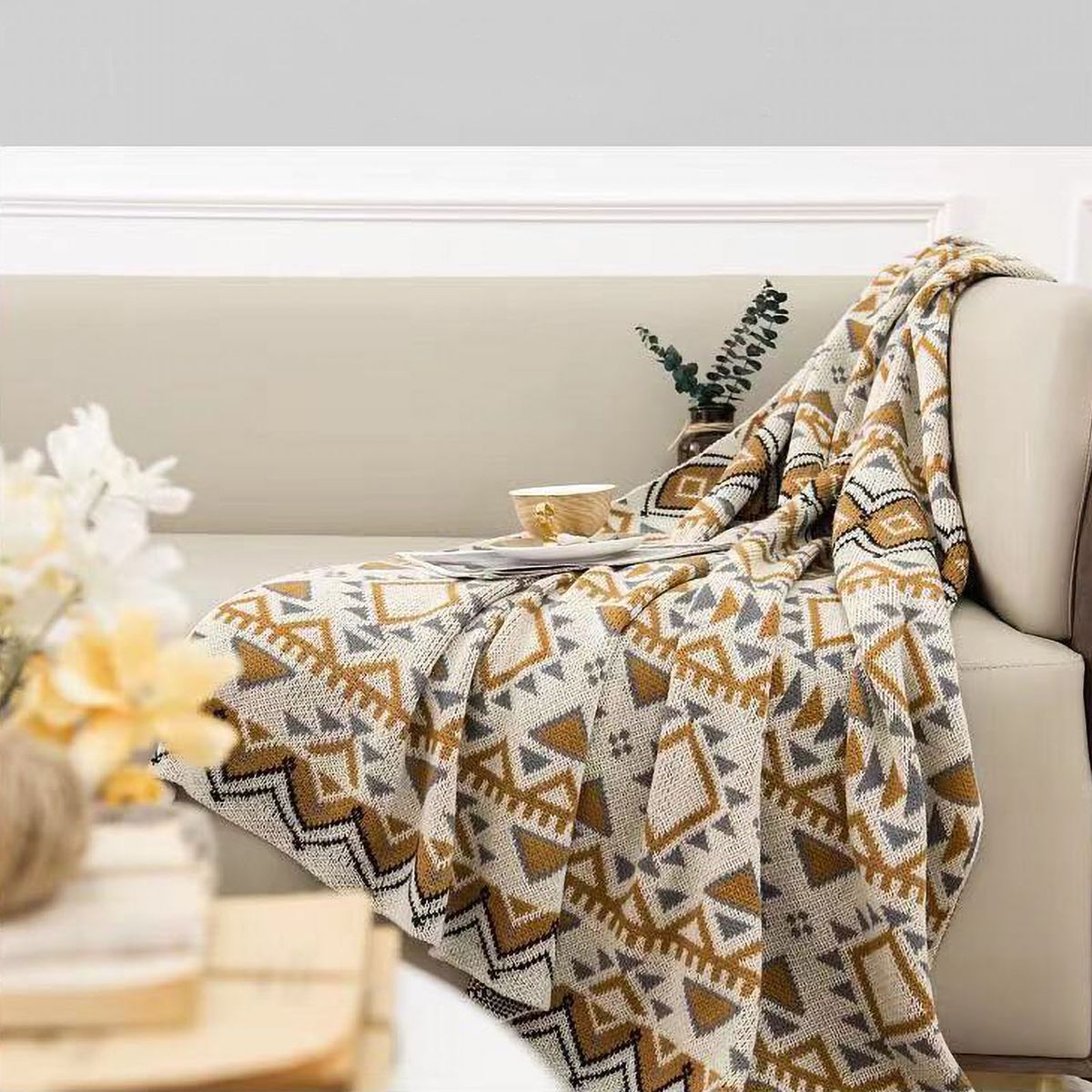 The blanket is made of imitation cashmere, and the style is retro bohemian. It can be used not only as a blanket but also as a shawl. The blankets are exquisitely crafted and woven with rich textures and neat patterns. The beige color makes people feel relaxed and comfortable. The blanket is soft, elastic, and moderate in thickness. It can be used all year round and is a good helper for daily life.