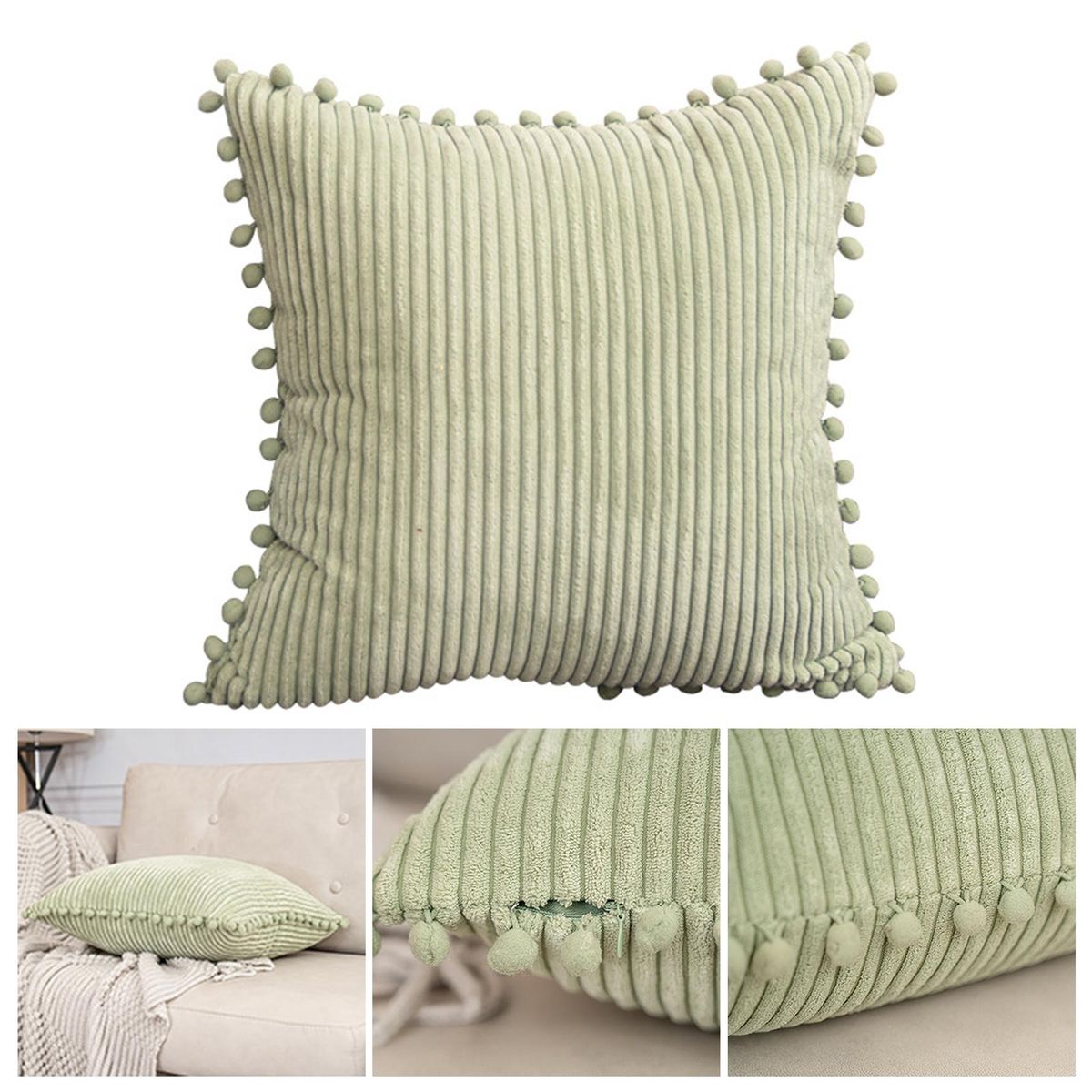 This throw pillow case is designed with stripped and tassel ball, which is a good home decoration.