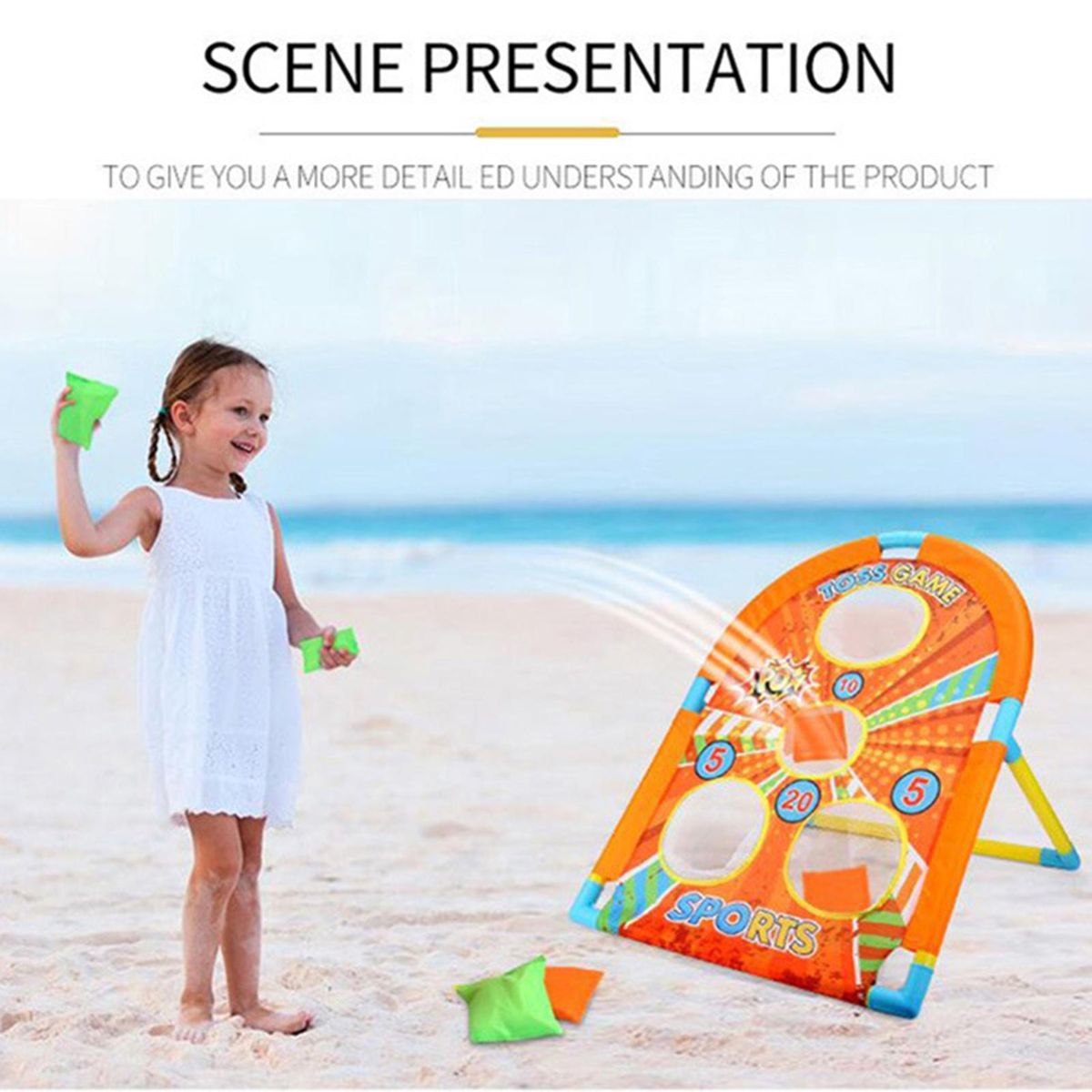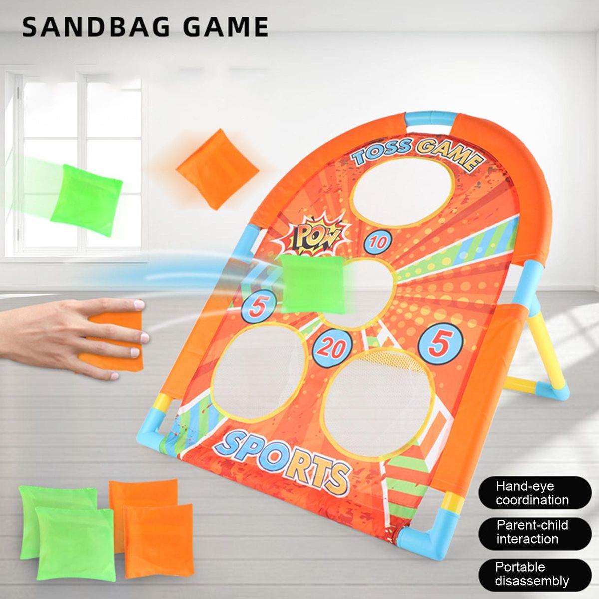 With vibrant color and exquisite pattern design, our kid toy can fully arouse your kid's attention. This cornhole toy for kids also helps toddlers to develop hand-eye coordination, promote color and shape recognition, relieve the depression and anxiety and so on. By aiming at the action of throwing targets, it is a competitive game.