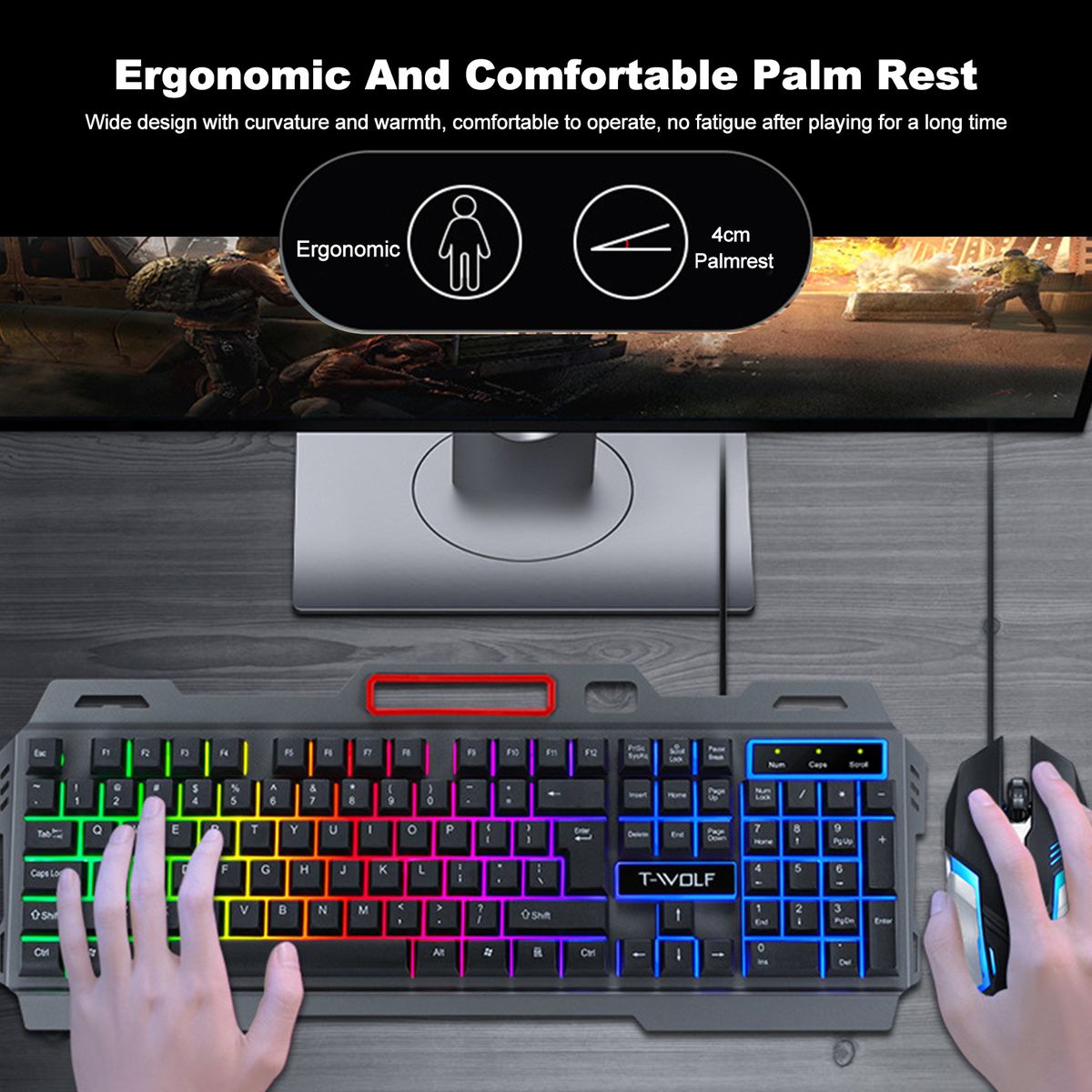 The T-WOLF Thunder Wolf TF600 wired USB key mouse set is the ultimate gaming companion for all enthusiasts. This glowing game simulation manipulator set is designed to take your gaming experience to a new level