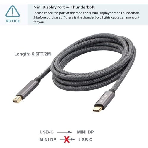 USB C to Mini DisplayPort cable enables you to connect a USB C (Thunderbolt 3) computer or phone to an monitor, HDTV or projector with mini displayport input for audio and video streaming. Compatible with the Apple Cinema Display or iMac (Target Display Mode) made before 2010. (NOTE: It isn't bidirectional. Can't work with Mac(Mini DP) to MacBook(USB-C). Can't support hard drives. Can't work with iMac(after 2010) with thunderbolt for target display mode).Thunderbolt 3 to Mini DP cable is plug & play, no need adapter or driver/software required with. This cable enables you to directly connect a type c port laptop to a mini displayport display(TVs/monitors/projectors). Experience 4K video resolution when paired with a 4K compatible computer and output display. USB Type C to Mini DisplayPort is compatible with newest MacBook, MacBook Air, MacBook Pro, iMac, and iMac Pro with Thunderbolt 3 port.Type C to Mini DisplayPort supports 2020/2019/2018/2017/2016 MacBook Pro, 2018 iPad Pro, 2019 iMac, Dell XPS 15/13, Surface book2, Lenovo Yoga 910, Samsung Galaxy S20/S20+/S10/S9/S8 and Note 10/9 etc. It is compatible with almost all usb c laptop, but for USB C phone/tablet it need the USB-C phone/tablet with DP alt mode.