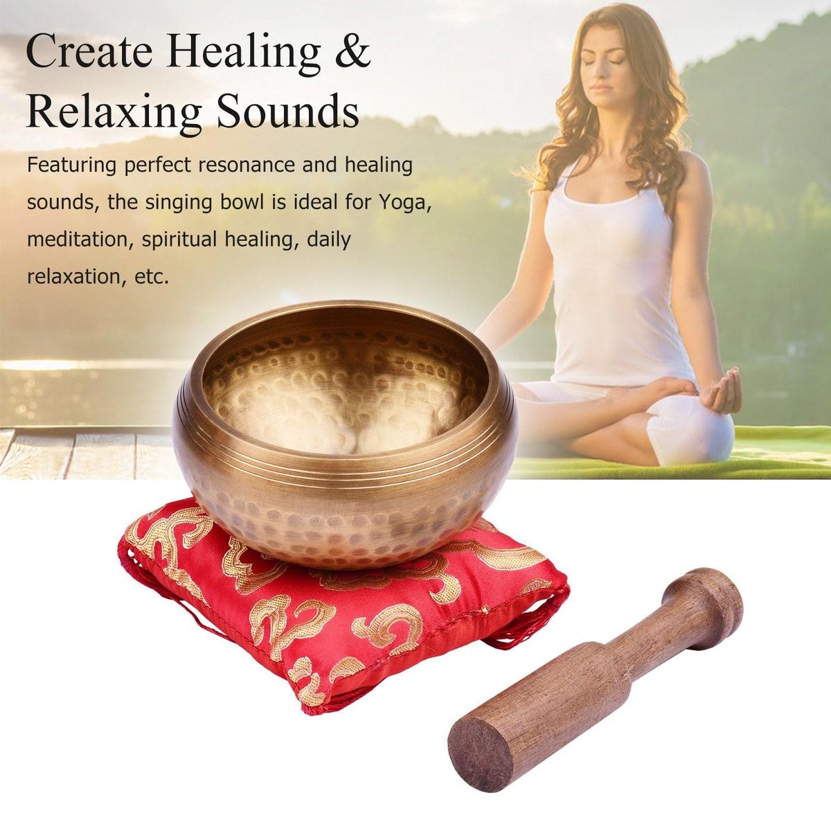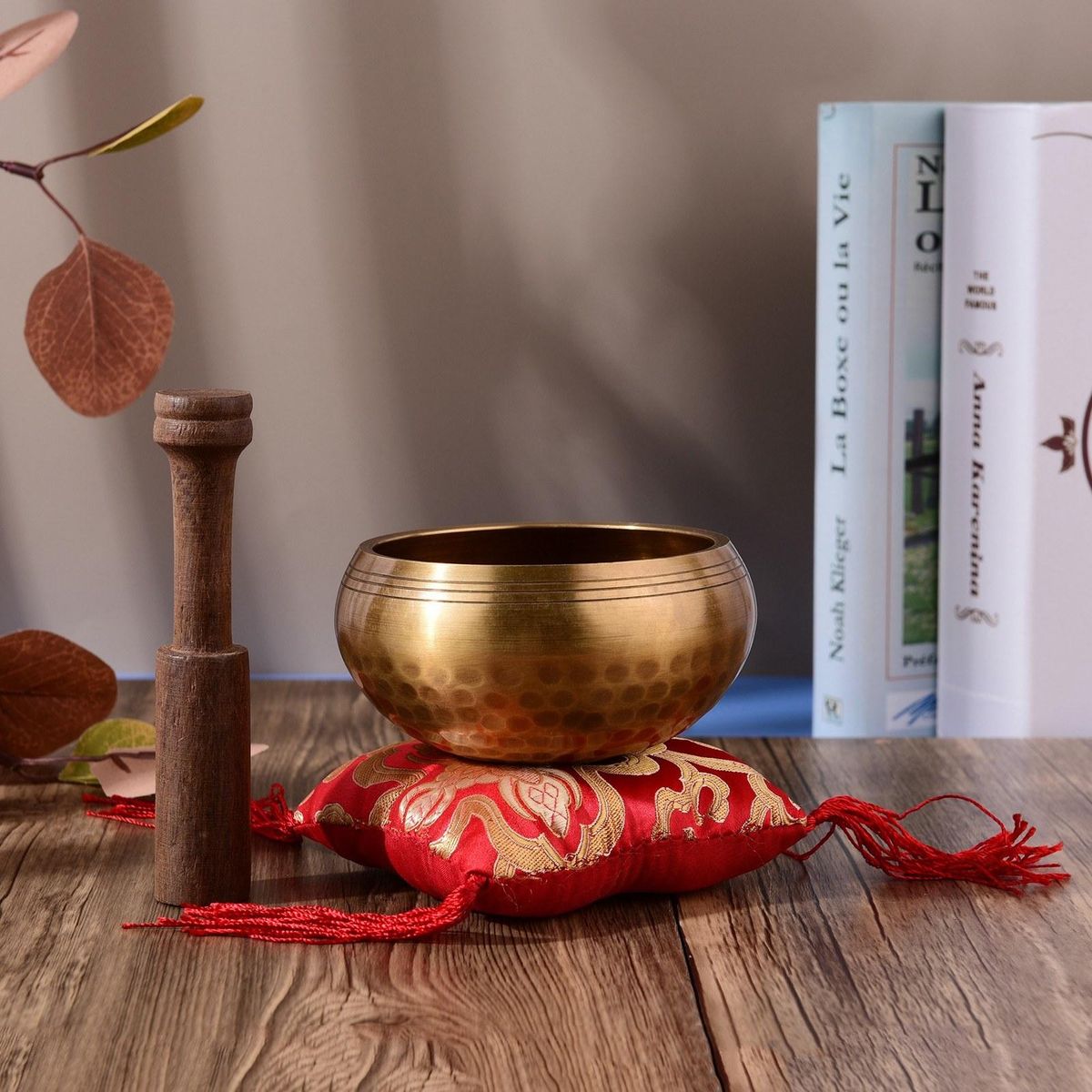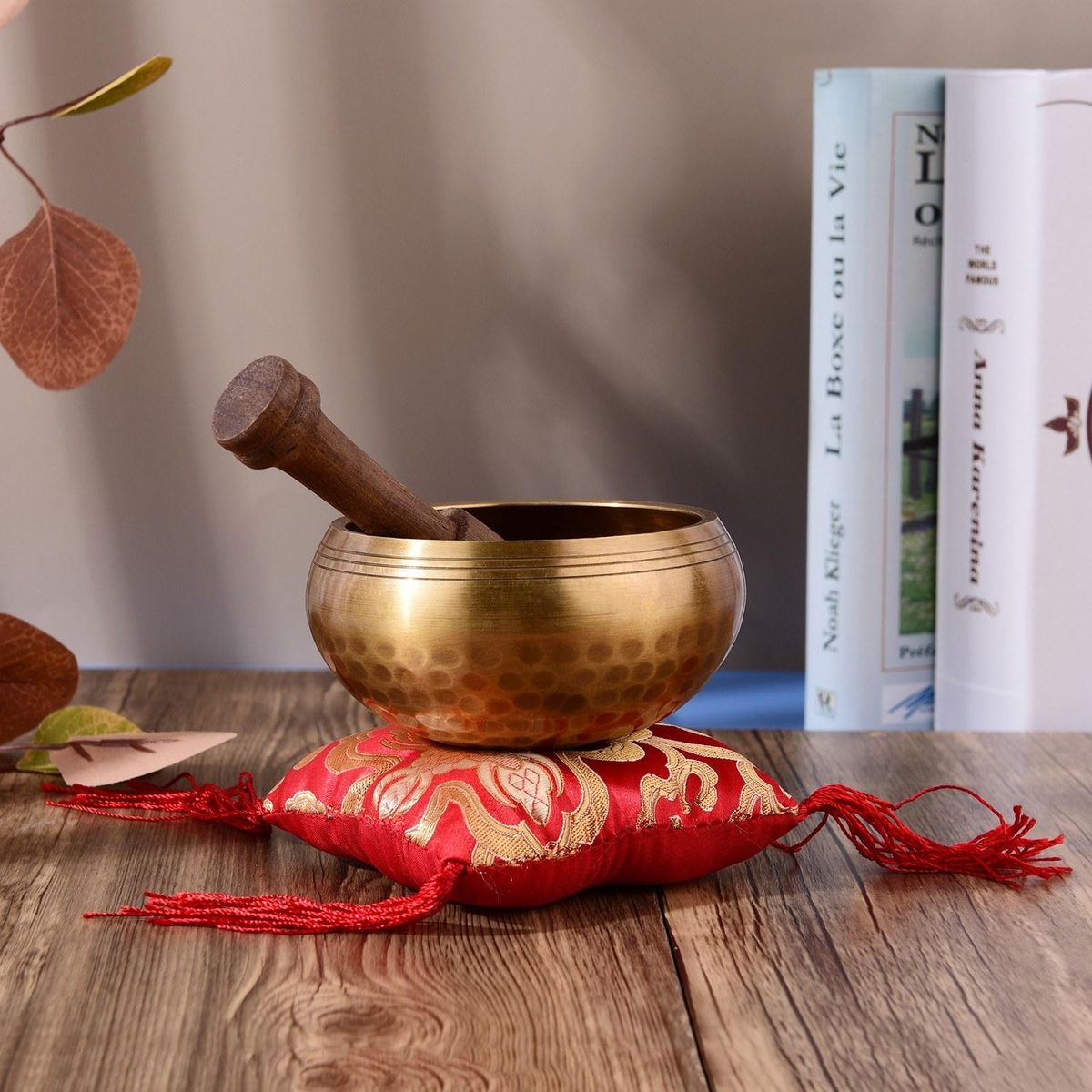 Buy Tibetan Singing Bowl Set with 9.5cm/3.7inch Handmade Metal Sound Bowl & Soft Cushion & Wooden Striker for Meditation Sound Chakra Healing Yoga Relaxation in Nigeria