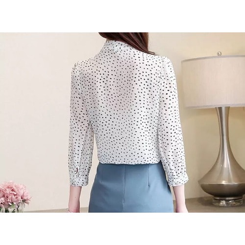 Buy Tie Neck Dotted Blouse- White in Nigeria
