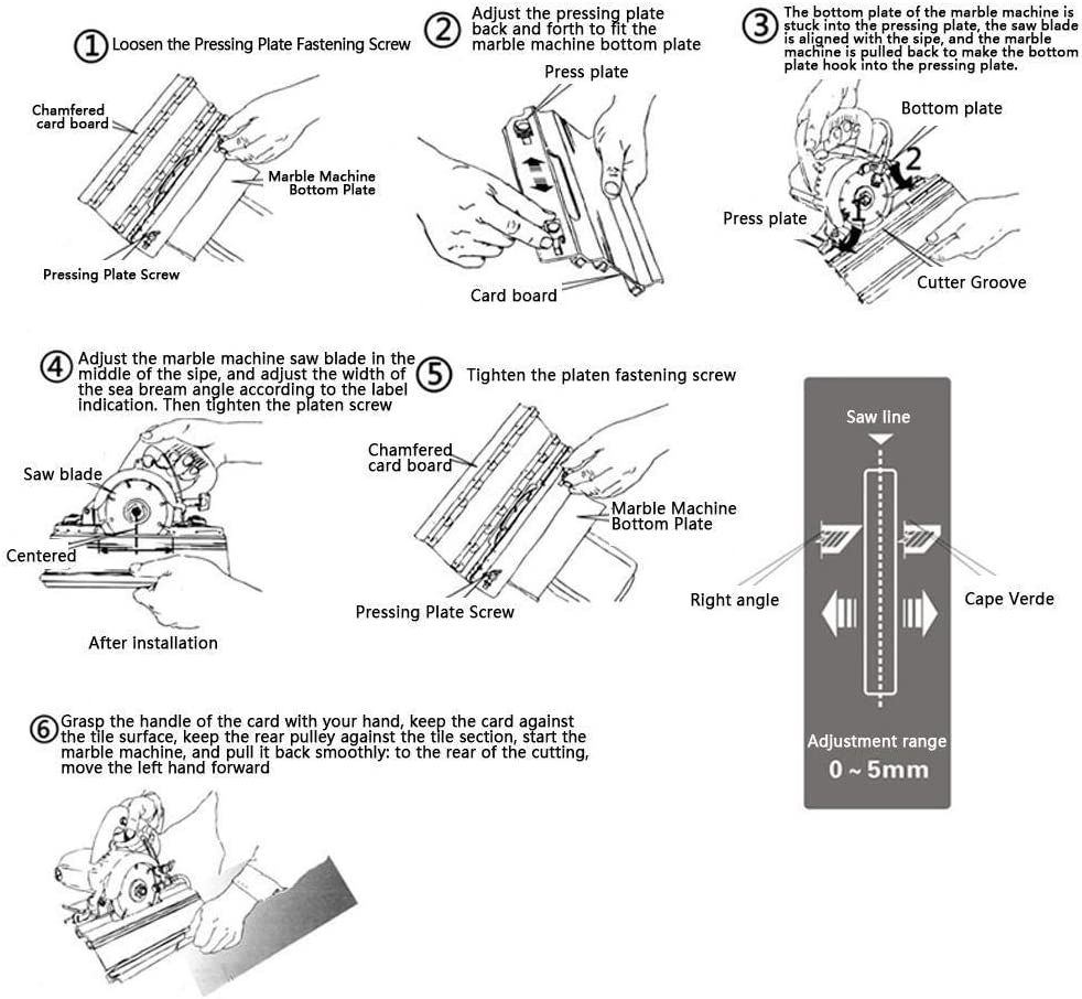 The chamfering machine can only be used on smooth bricks, and it can move smoothly on the brick surface by pulley.2) Bricks and stones with a thickness of less than 12 mm can be cut off directly, and those with a thickness of more than 12 mm can only be manually mended on the back of the brick again, and the horns of the rams formed will not affect the aesthetics.