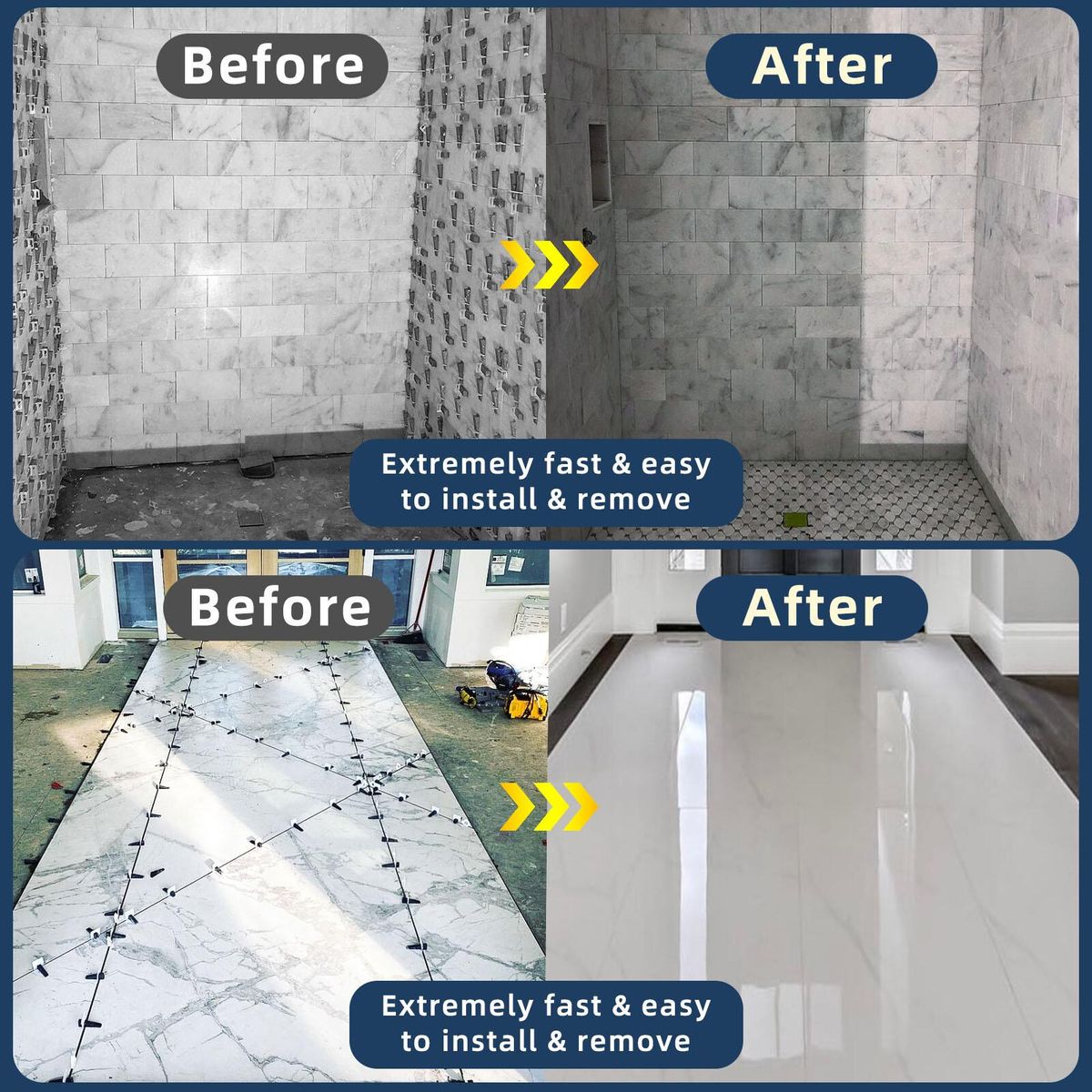 【Efficient and Save Effort】 This tile leveling system is used to correctly set flexible, large format, heavy, or low thickness tiles, helping you to increase the speed of tiling, quickly and easily, saving time and effort. Suitable for both floor and wall tile installations, this tile installation kit is compatible with an array of tile materials, including porcelain, ceramic, marble, and natural stone.