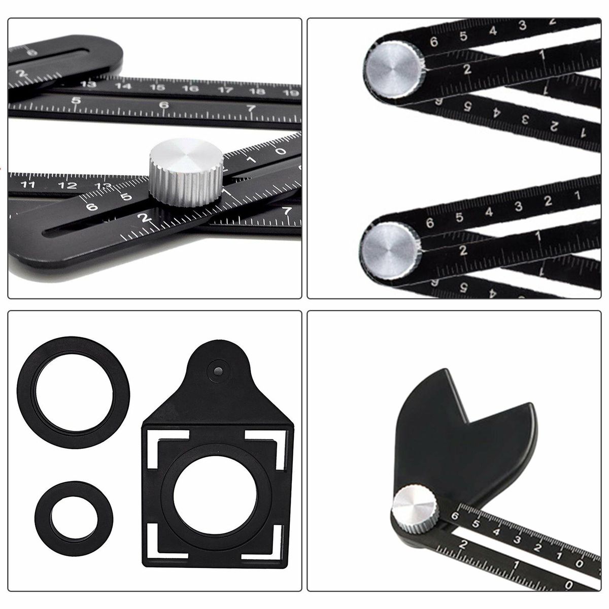 Improved angle measurement ruler: This angle ruler has a six-piece ruler and a metal knob with a tile positioning hole opener. You can adjust the six metal knobs to precisely create the desired shape, and then find the right hole to drill s position. With 6 folding edges, users can use the angle finder tool to easily create and measure special angles or shapes to improve work efficiency.