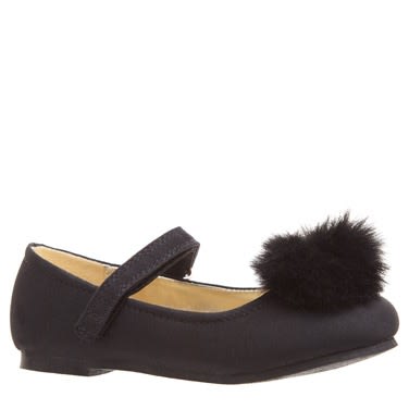 These adorable ballerina style flats feature a fluffy pom pom on each toe and an adhesive strap for added security. A sweet option that will look sweet when paired with dresses and skirts