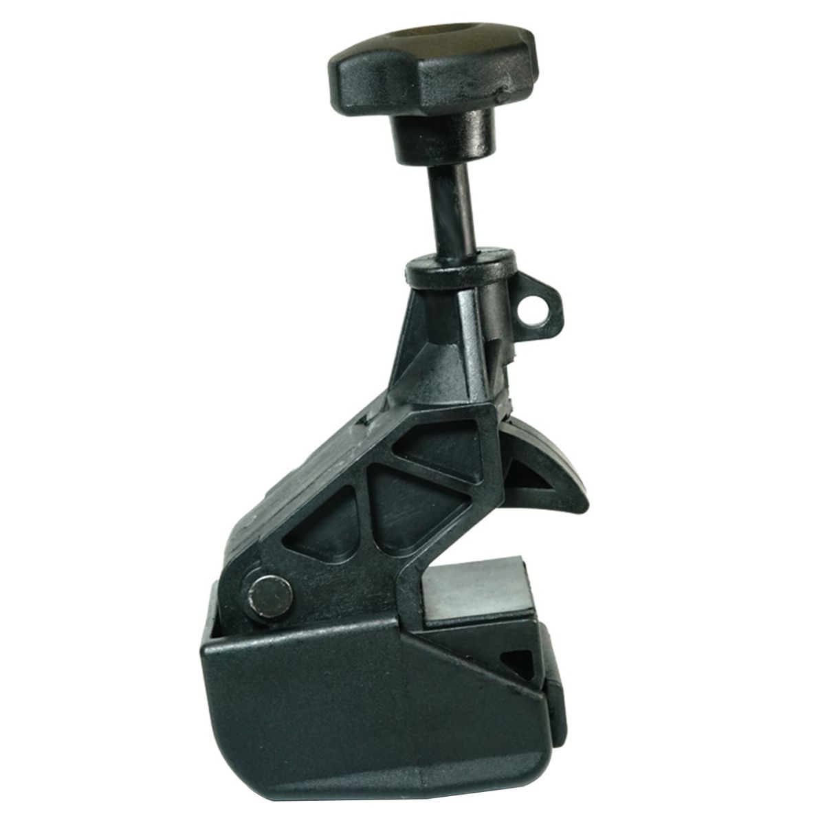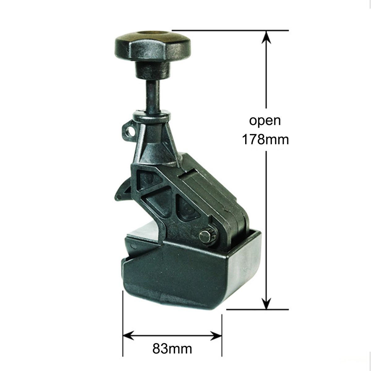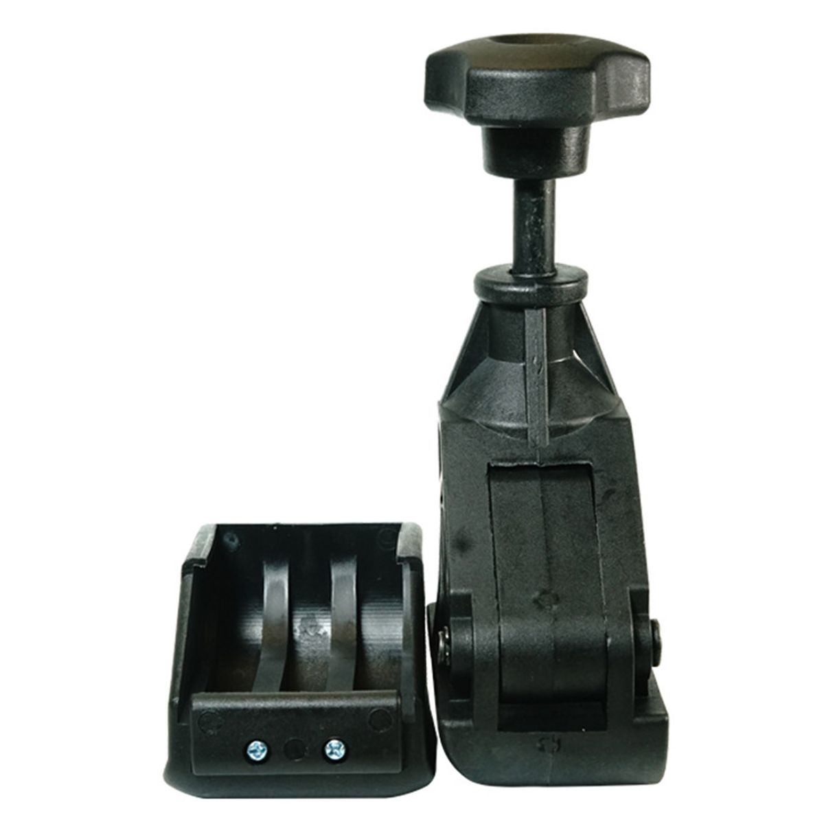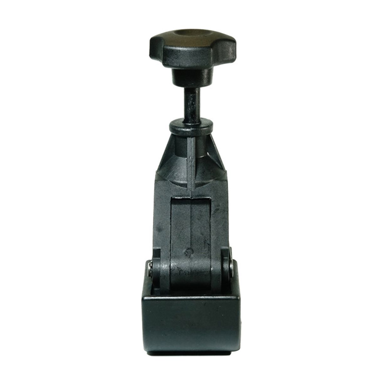 The clamp holds the tire bead below the rim flange for fast tire mounting.