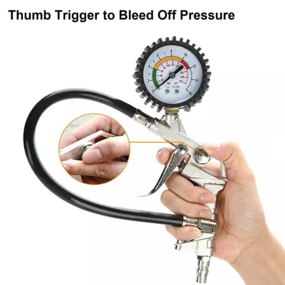 Whether it's just a handheld tyre pressure gauge for checking your tyres on the go, or a complete setup with an air compressor, pneumatic hosesand tyre inflators, you can get your hands on it here with us.