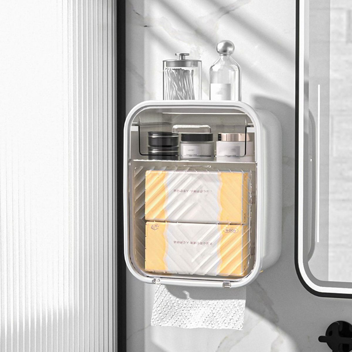 Adopting a wall-mounted design, this tissue box will not take up too much space. And it has a good load-bearing capacity, which can steadily drag your items and will not fall easily.
