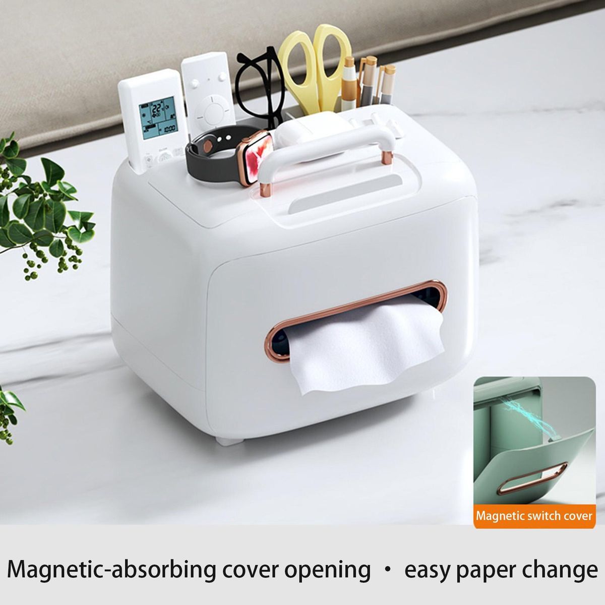 Nordic style of this tissue box, simple and beautiful, more importantly, it is designed with magnetic opening lid, waterproof and dustproof, wide paper outlet, making a smooth draw, making it easy to use.