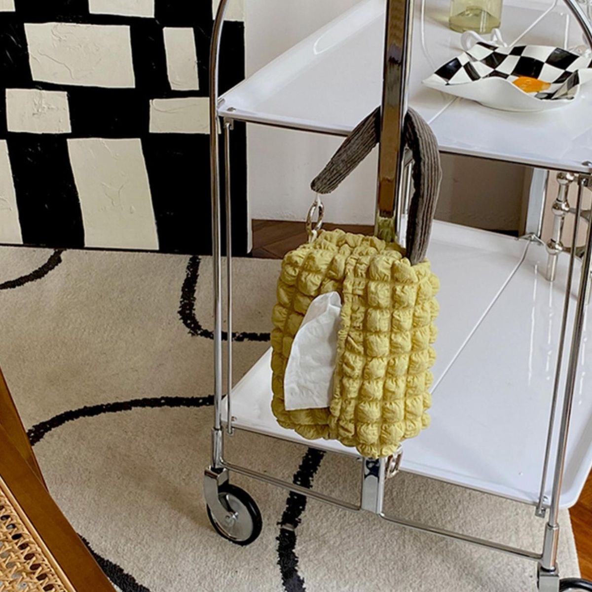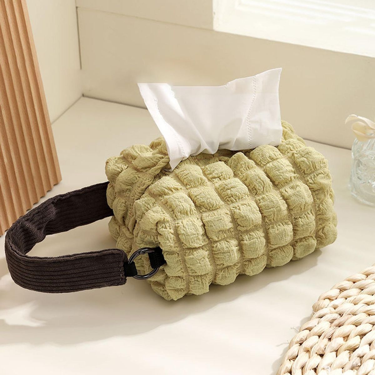 Compared with plastic tissue boxes, this cloth tissue bag is more lightweight and fall-resistant, which is convenient for you to carry when travel, picnic, and out. In addition, the elegant appearance makes it be a beautiful table or car decoration.
