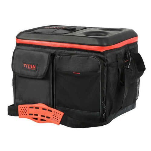 Titan 50-Can Collapsible Cooler Tabletop & 2 Drink Holders Lid -Black & Orange |
