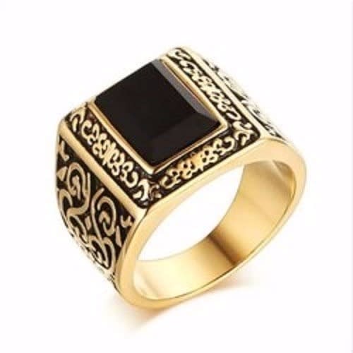 Men's rings color gold black ring for men retro texture engraving modelling is simple and generous wholesale