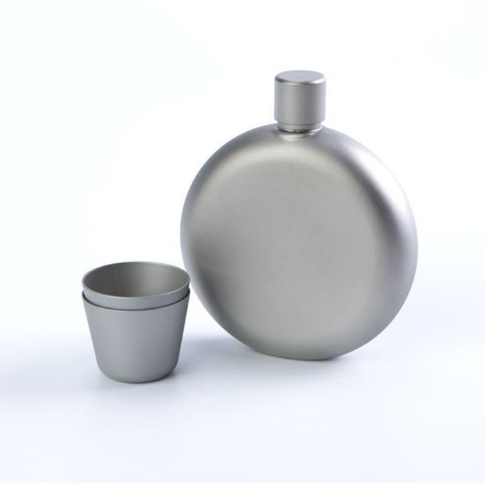 This flat flask and cup are made of titanium, matte surface of elegant design, It is tasteless, odorless, and dishwasher safe.
