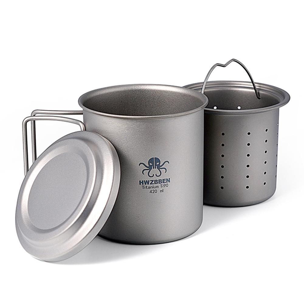 Buy Titanium Tea Cup with Folding Handle Outdoor Camping Tea Maker Mug with Tea Strainer 420ml in Nigeria