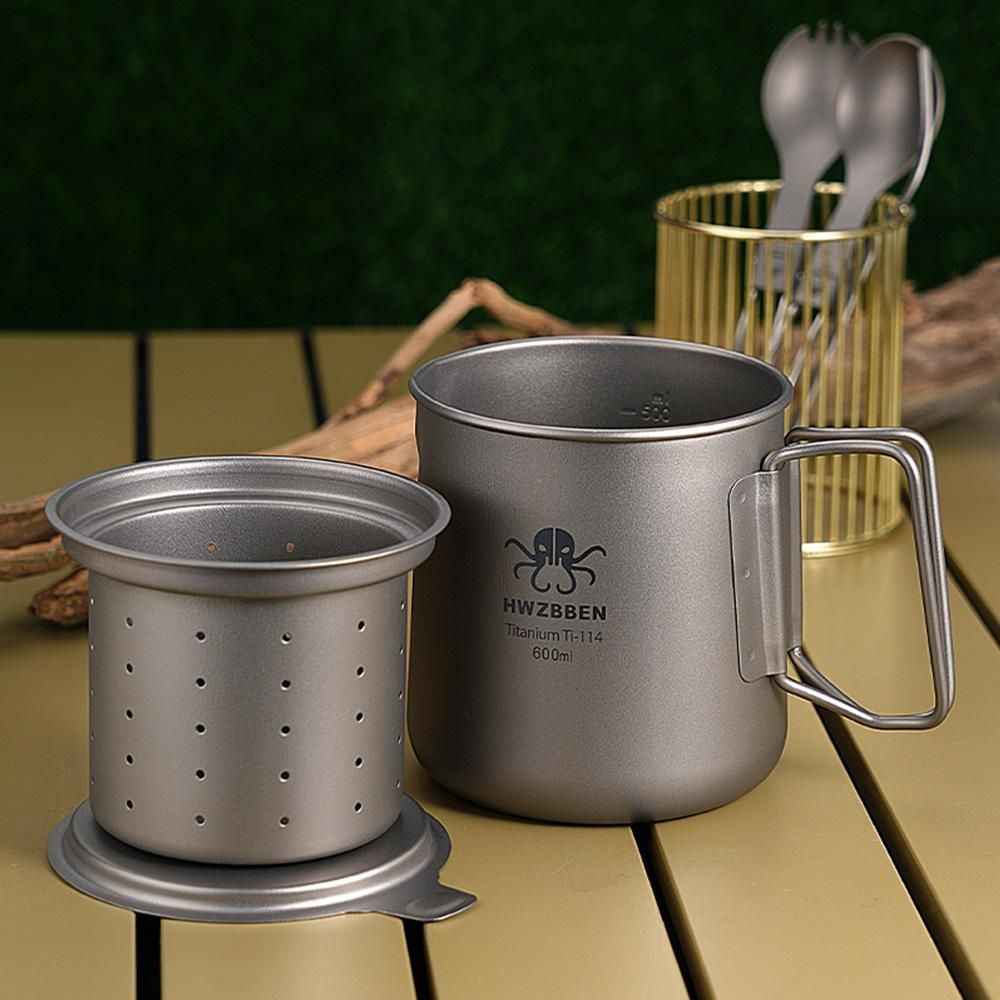 Buy Titanium Tea Cup with Folding Handle Outdoor Camping Tea Maker Mug with Tea Strainer 600ml in Nigeria