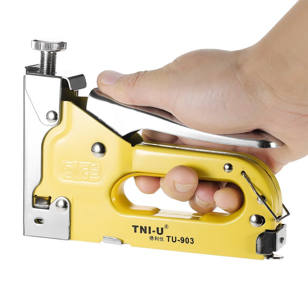 Staple guns are very handy when finishing up or touching up various materials that can be stapled to a wooden frame much like a nail gun but without the added weight.