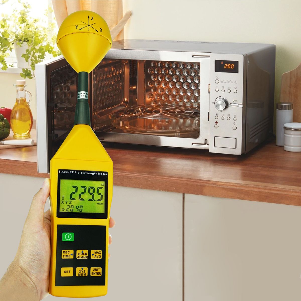 3-Axis RF Meter Electromagnetic Radiation Tester Detector 10MHz to 8GHz with Alarm and Tripod Mounting RF Field Strength Meter