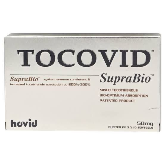 Tocovid SupraBio™ is a patented formula developed by HovidMalaysia - a pharmaceutical company producing healthproduct to more than 50 countries in the world.The Suprabio™ unique delivery system helps to increase and enhance theabsorption of palm tocotrienols into our body up to 300%. Itcan reach into most part of vital organs like the brain, liver,skin and kidney, allowing the body to enjoy the maximumhealth protection. Research report on Tocovid SupraBio™ atdose of 400mg daily includes:Superior antioxidant, protectcell from free radical damage (60 times potent compared withTocopherol)Neuroprotection on stroke prevention & TIA (Transientischemic Attacks) managementLiver protection - reduction of Non-alcoholic fatty liver disease Cardioprotective properties that assisting cholesterollowering and prevent development of plague in blood vesselsTumour / anticancer suppressive propertiesPromotes hair growthLiver protection - reduction of Non-alcoholic fattyliver diseaseSuitable for:Usage as daily antioxidant and cellular protectionhealth supplement to reduce cell damages that lead toaccelerated aging of vital organs including skin, liver, heart,brain and kidney.