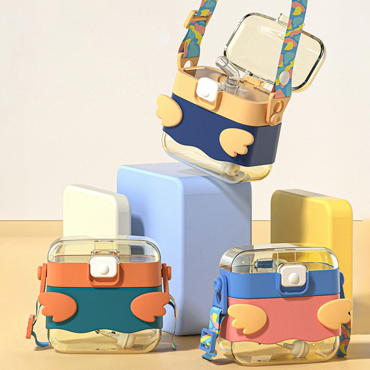 Toddler Bottle;spill resistant Toddlers Cup with Shoulder Strap;Cartoon water Bottle with tubularis Lid;baby cups travel cup Toddler Cups for travel;Cute Water Bottle Portable Cup for going out;Portable Bottle Wide Mouth Coffee Travel