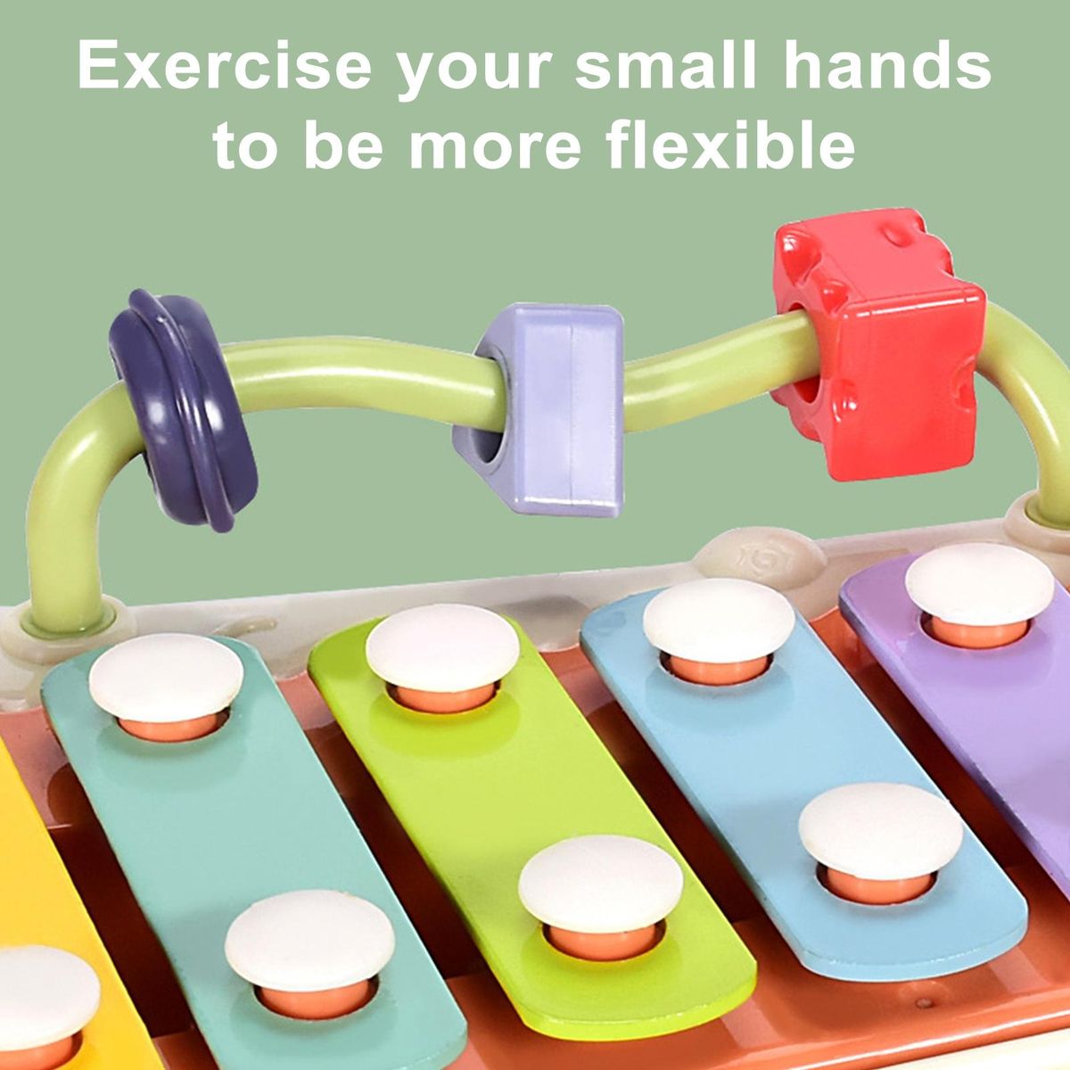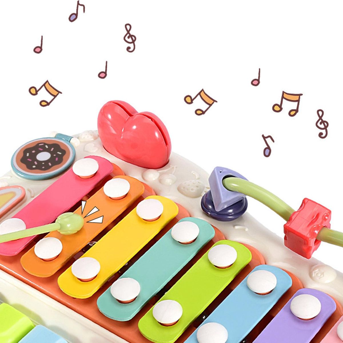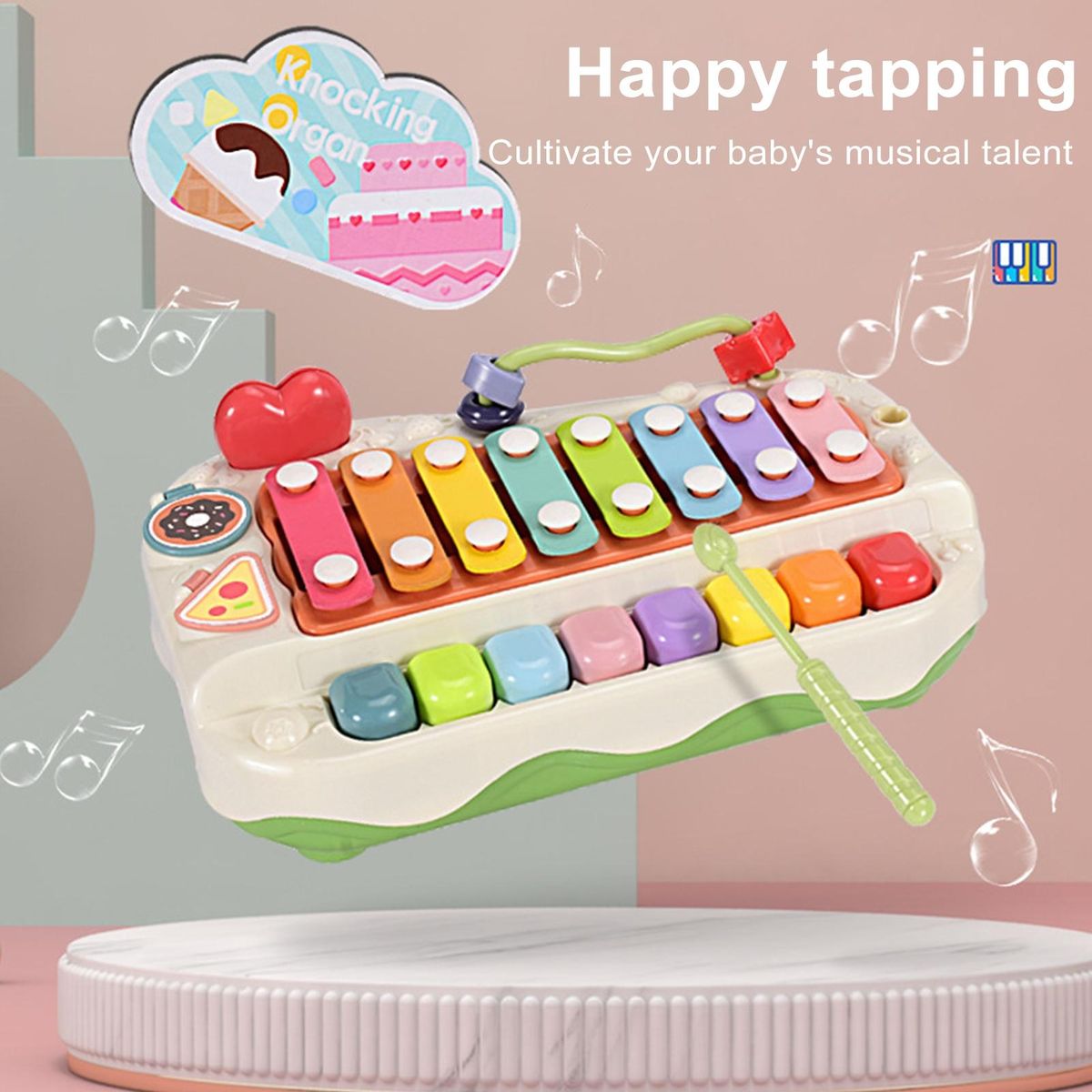 With its piano, sheet music, and beading functions, this musical instrument toy allows babies to explore and learn the sounds of different instruments by simply pressing or tapping. the included musical scores further enhance their early rhythm and musical enlightenment.
