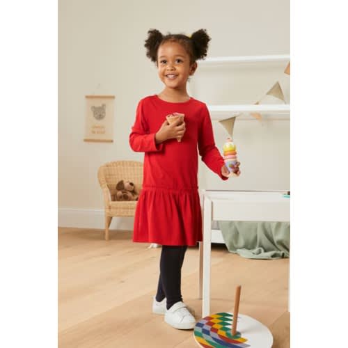 Buy Toddler's Ribbed Jersey Dress For Girls - Long Sleeve - Red in Nigeria