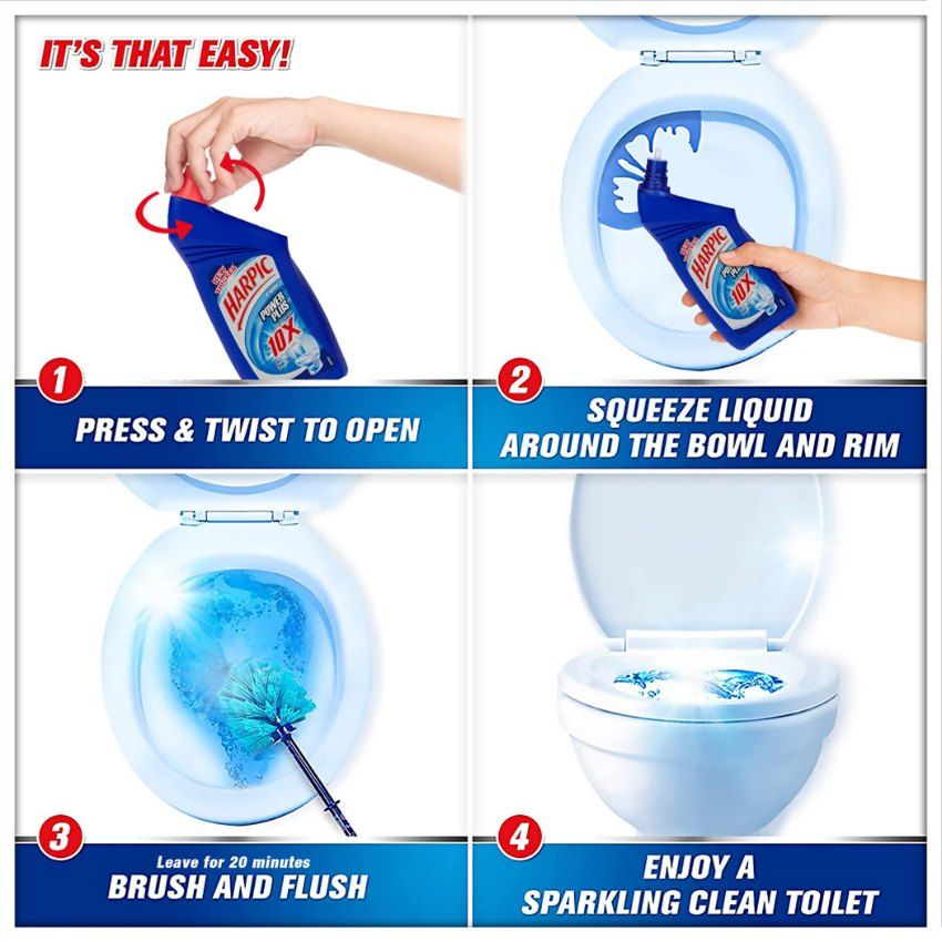 Moreover, it disinfects your toilet, and now with the improved Harpic technology, you get a sparkling clean, hygienic and fresh toilet with every use of Harpic. Harpic toilet cleaner is many times better than the ordinary bleach, acid and phenyl, when it comes to cleaning, fragrance, as well as killing germs.