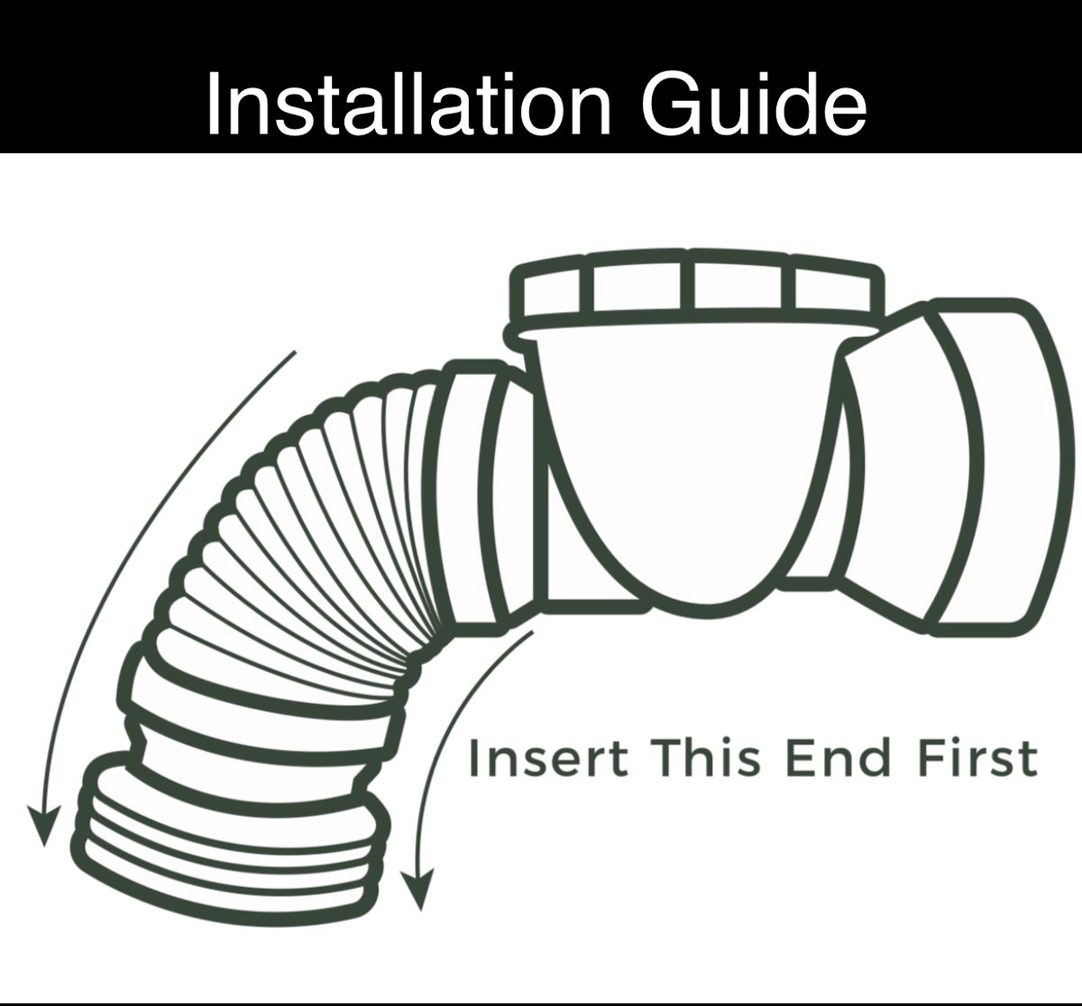 Important: Follow the installation guide arrow as shown on the front of the plastic packaging material. “First Insert the flexible tube end into the toilet sewage outlet drain pipe!”
