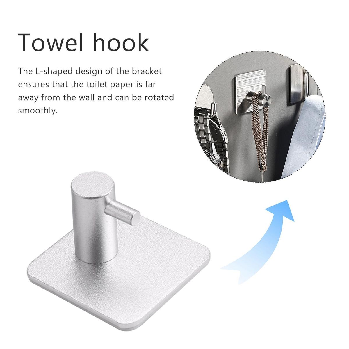 [Perfect Bathroom Set]Stylish, functional and modern design, matches most style of decoration or interior. The self-adhesive towel hook is perfect for hanging coats, bathrobes, hats, towels, kitchen utensils, umbrellas, keys, etc. Perfect for bathrooms, kitchen, hotel, bedroom or closets.