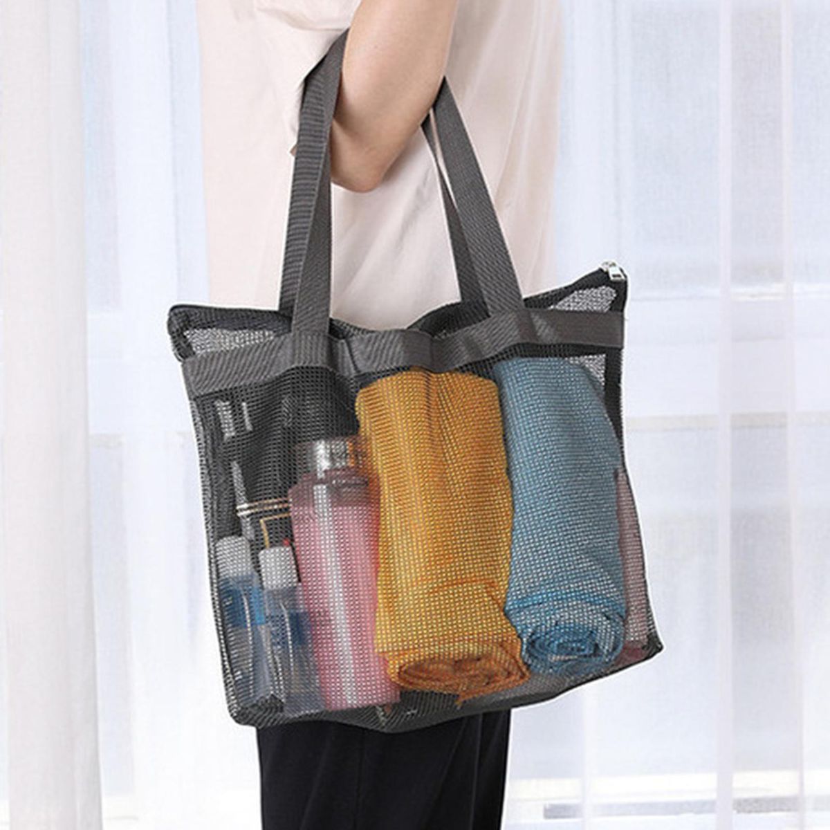 Featuring a transparent mesh design, this wash bag allows you to see clearly inside and features a zip design to provide a smooth opening and closing.