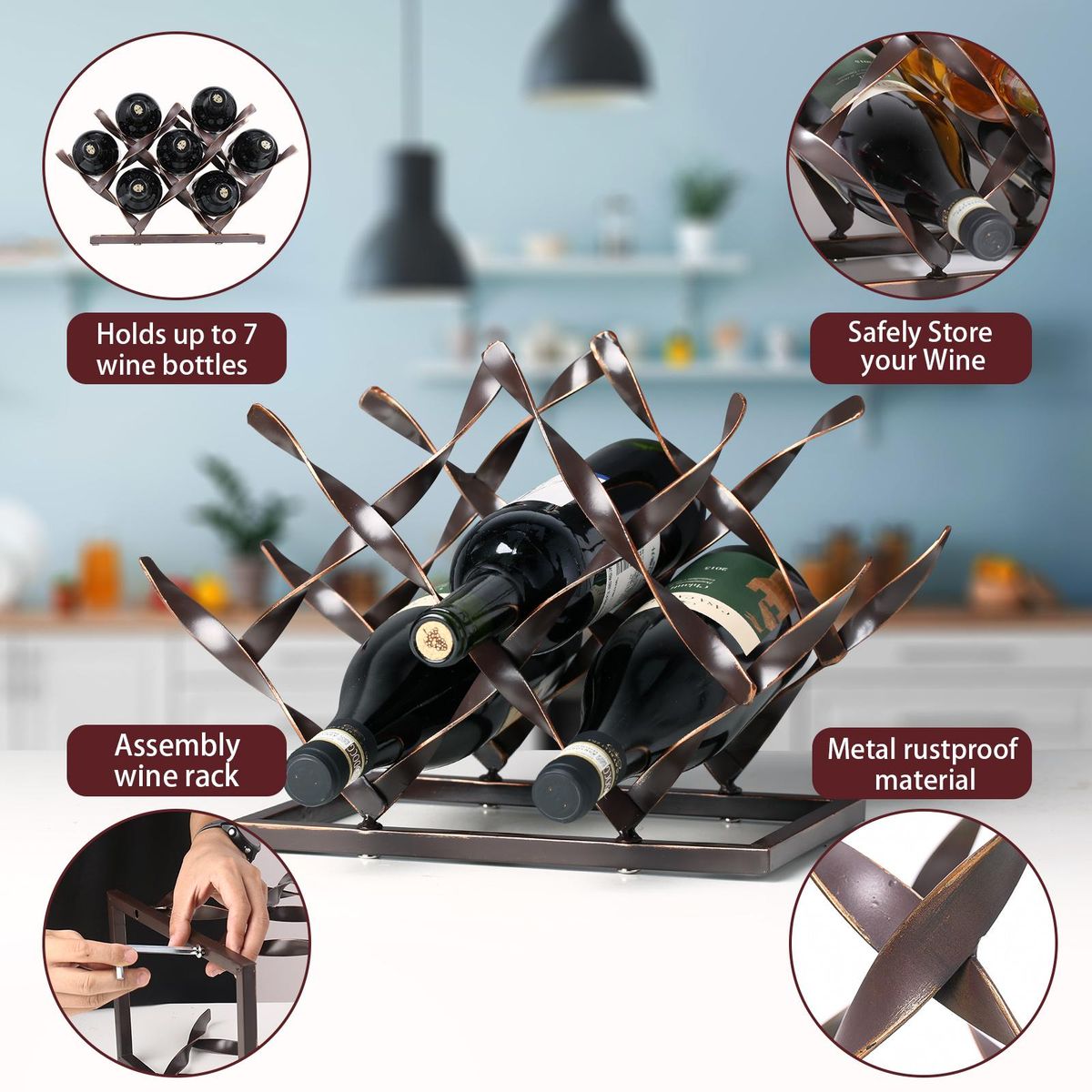 Buy Tomfeel Iron Wine Rack Winebottle Holder Simple and Modern Bottles Organizer Perfect Home Decor, Bar, Sideboard Kitchen Storage (7 Bottles) in Nigeria