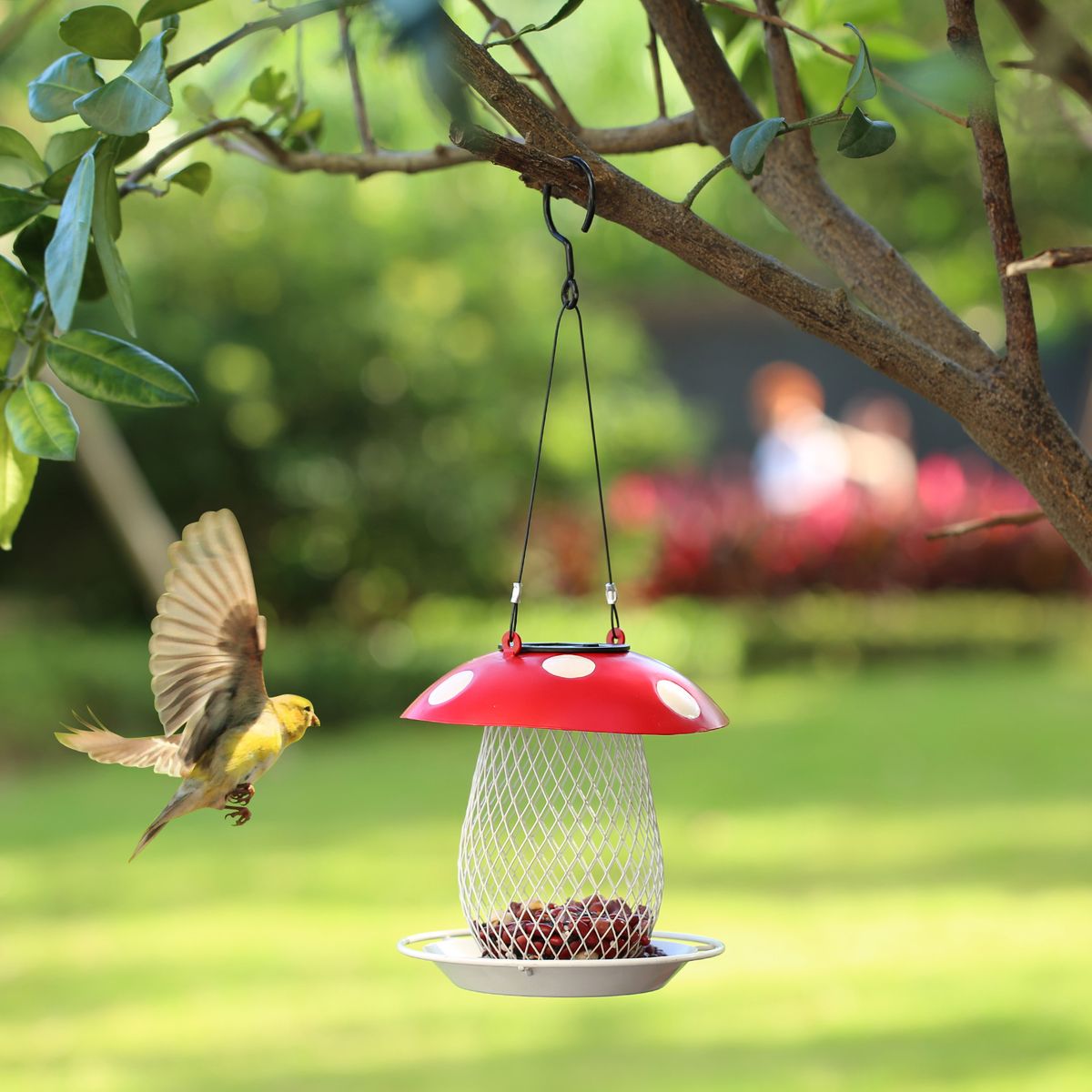 Craftsmanship: Handmade by professional craftsmen through welding, polishing, and coloring processes, and the surface is baking paint skill, which is waterproof and rustproof and can be used outdoors for a long time. Hooks and tough, thin wire rope ensure the stable hanging of the feeder.