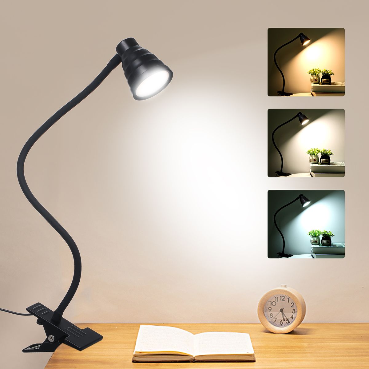 This clamp light with a stable and flexible tube which can be twisted to any positions. 3 distinctive light modes meets any different lighting requirements. Each light brightness is designed with 10 levels adjustable. Comes with compact and classic shape design, it not only function as a desk reading lamp, but also a modern decoration for you.