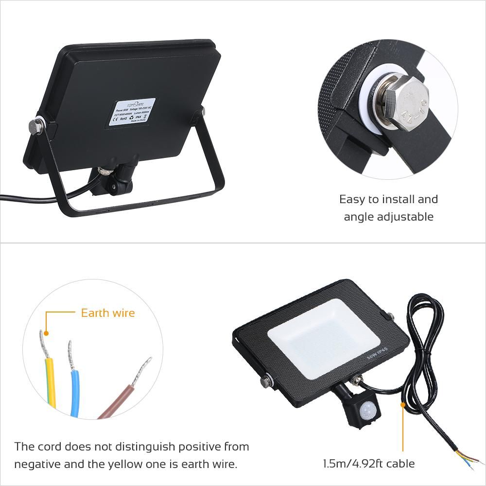 Buy Tomshine AC220V-240V 50W Led Sensitive Motion Sensor Flood Light Project Lamp PIR Motion Inductor Lamp Adopted Human Infrared Technology IP65 Water-resistant for Garage Patio Yard Stairs Front Door Outdoor in Nigeria