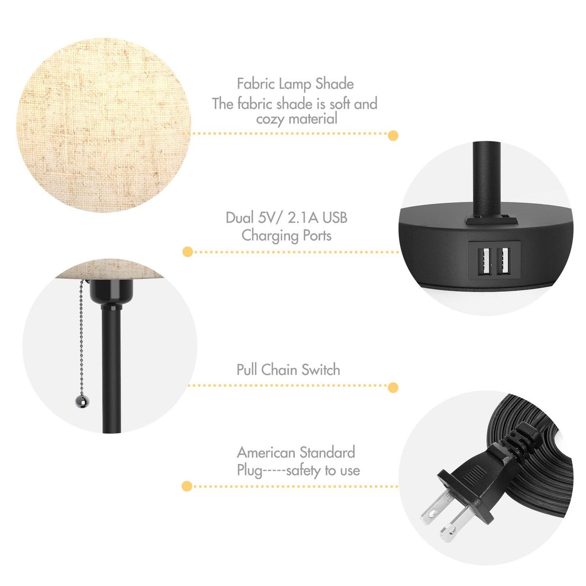 Buy Tomshine Bedside Table Lamp Dual USB and Socket Night Light Desk Lamp for Living Room Bedroom Pull Chain Switch in Nigeria