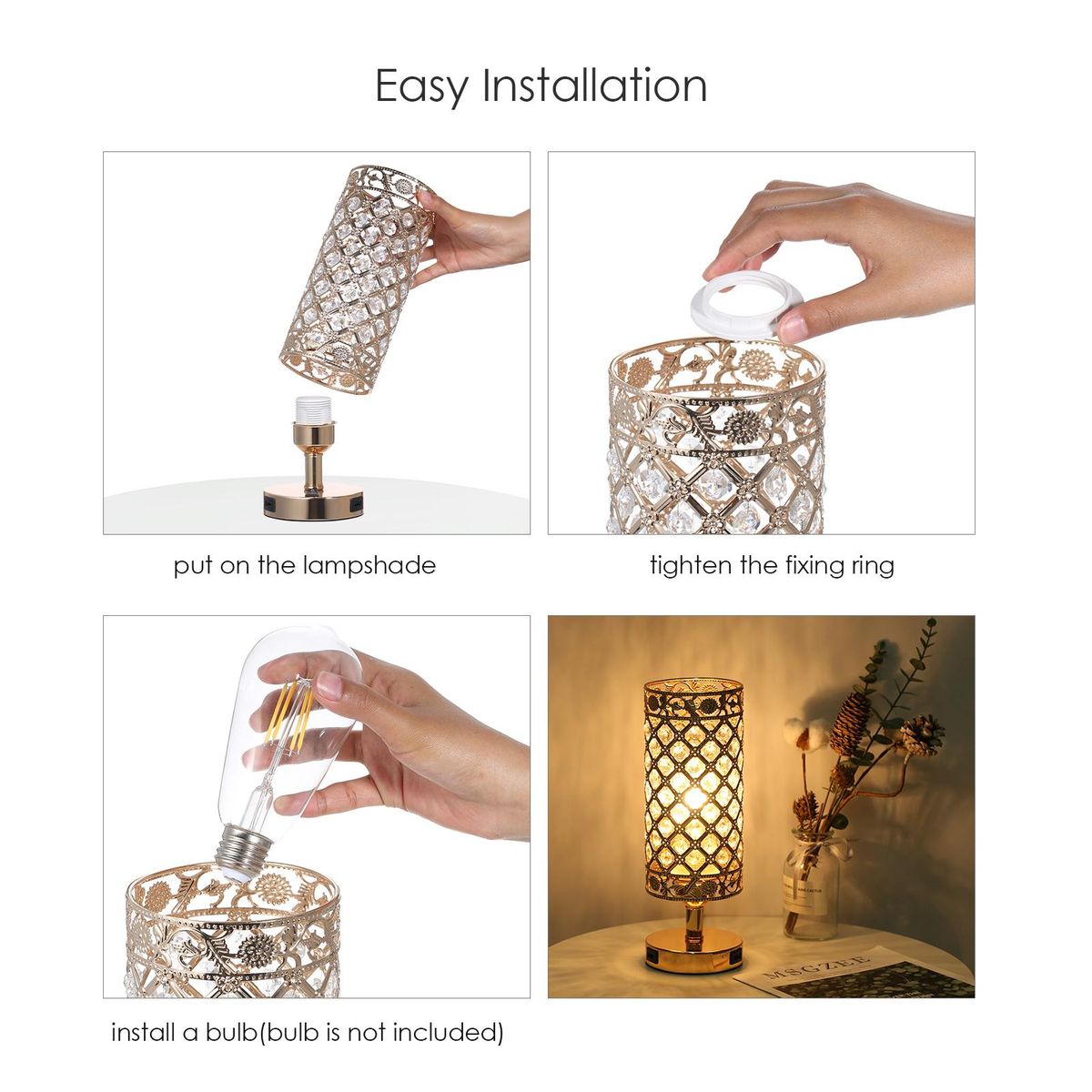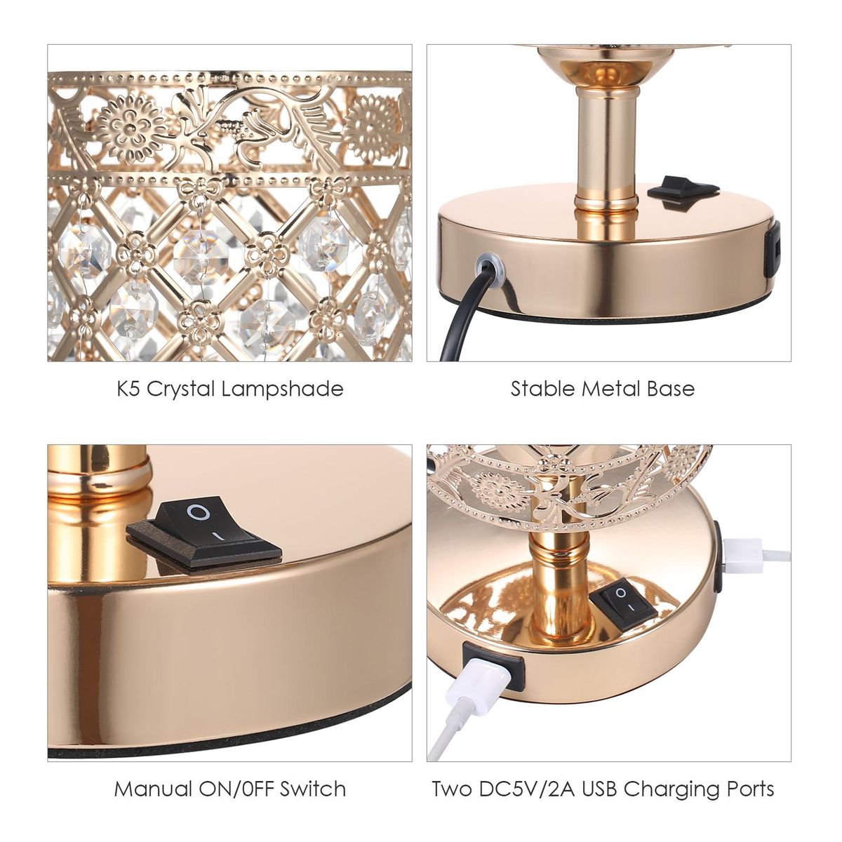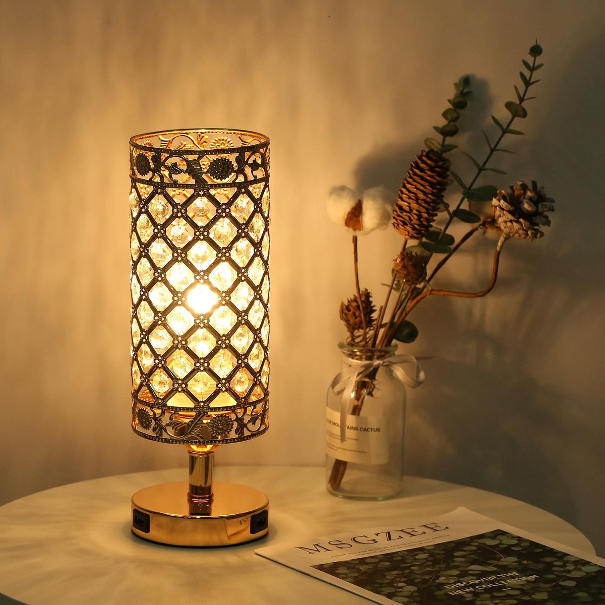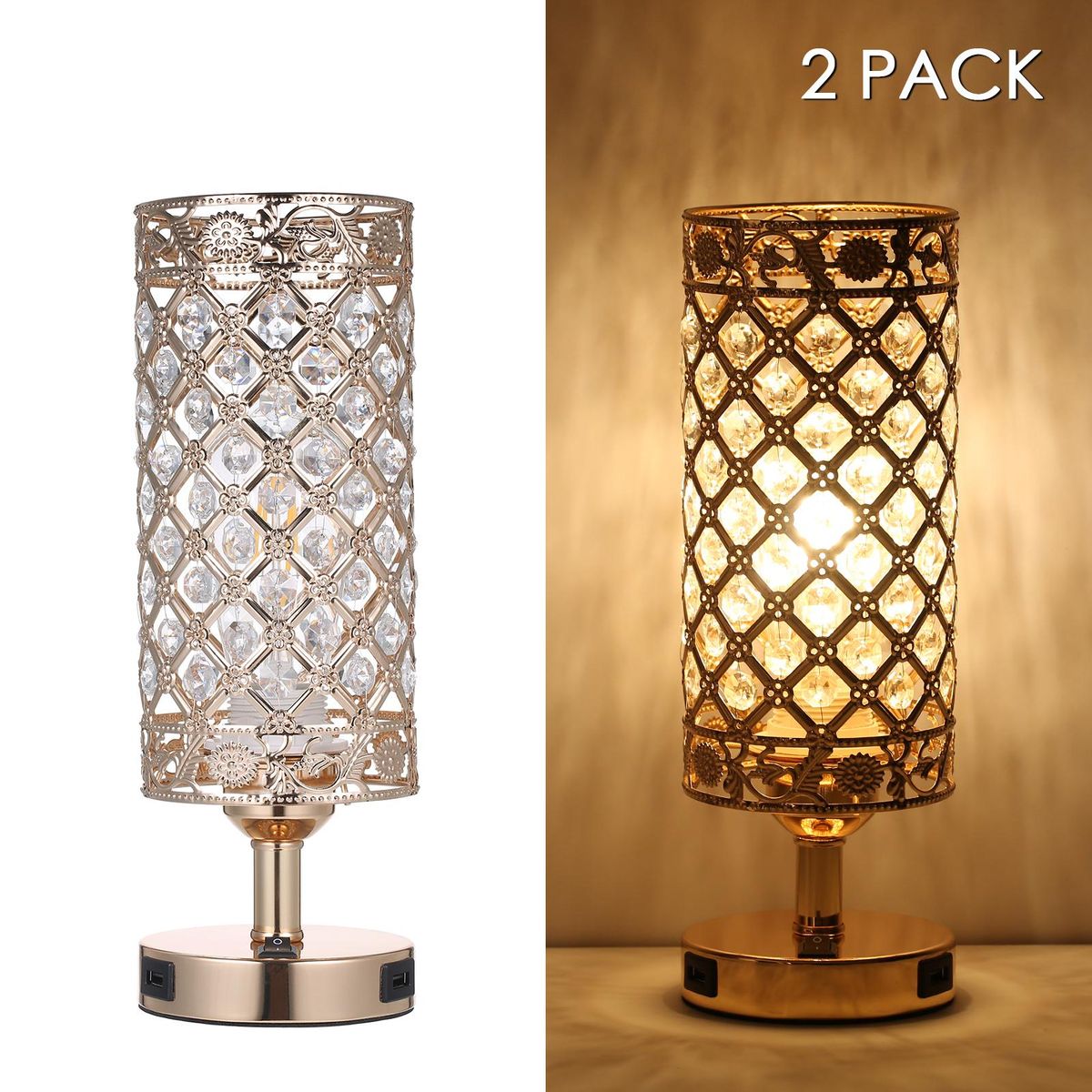 Buy Tomshine Crystal Bedside Table Lamp Decorative Desk Light with Dual USB Charge Ports Modern Nightstand Lamp for Bedroom Living Dining Room Office in Nigeria