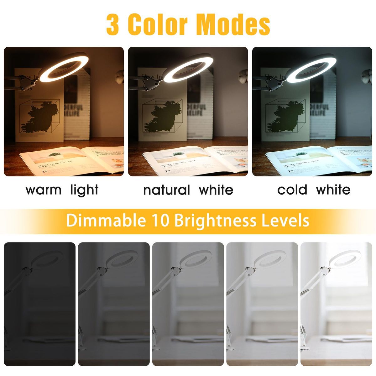 Buy Tomshine Flexible Clamp-on Table Lamp Swing Arm Dimmable LEDs Desk Light 3 Color Modes & 10 Brightness Levels Reading Working Studying Light in Nigeria