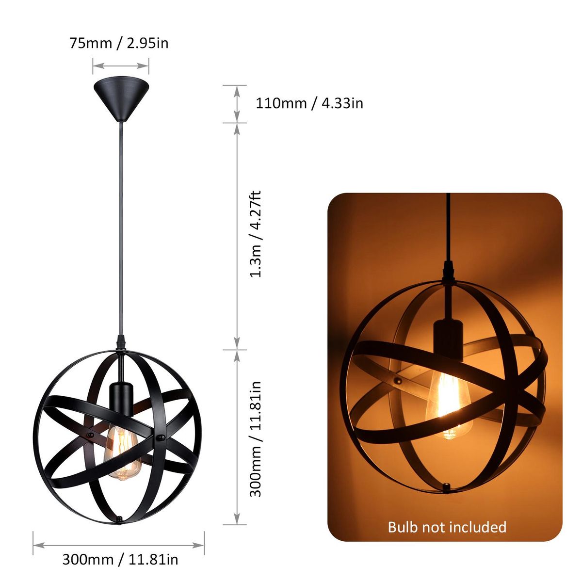 Buy Tomshine Industrial Pendant Light Chandelier E26 Base Vintage Spherical Hanging Lights Lantern Globe Ceiling Light for Living Room Kitchen Restaurant (without bulb) in Nigeria