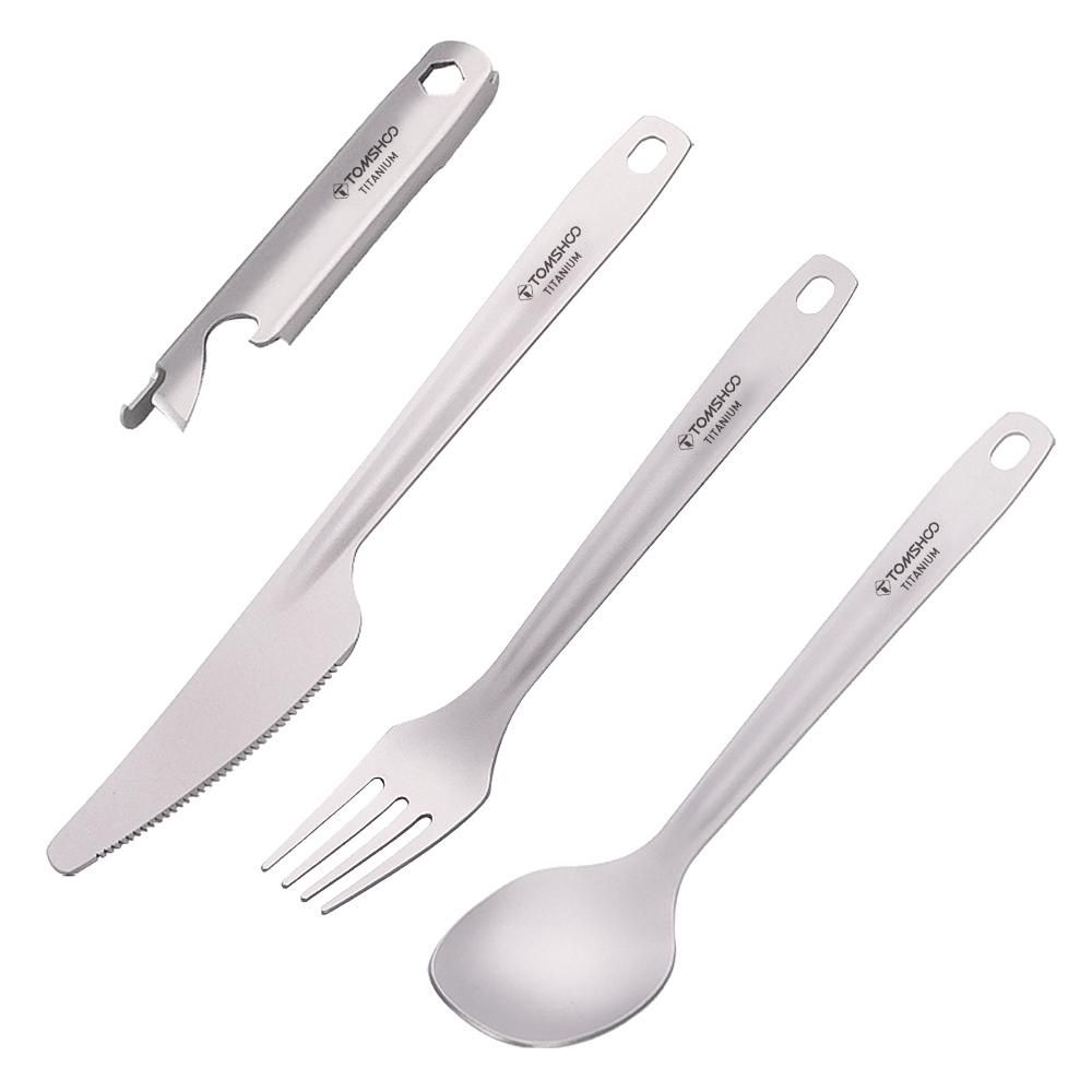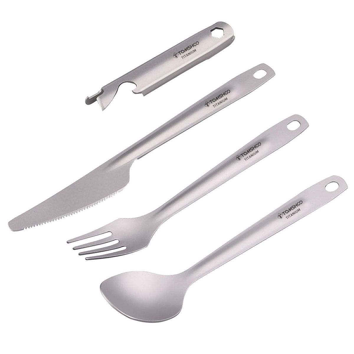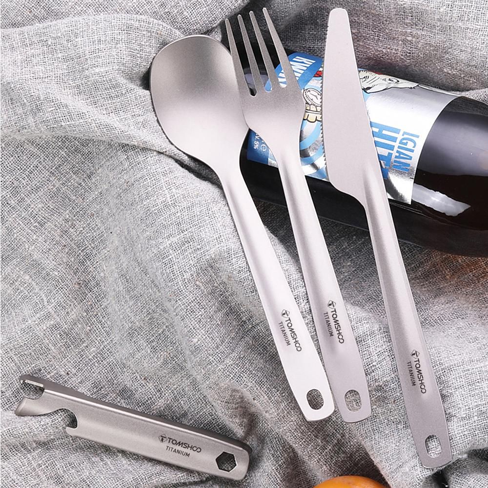 Buy TOMSHOO 4-in-1 Titanium Flatware Cutlery Set Lightweight Dinner Spoon Fork Cutter with Multifunctional Storage Holder Bottle Opener for Camping Hiking Backpacking Picnic in Nigeria
