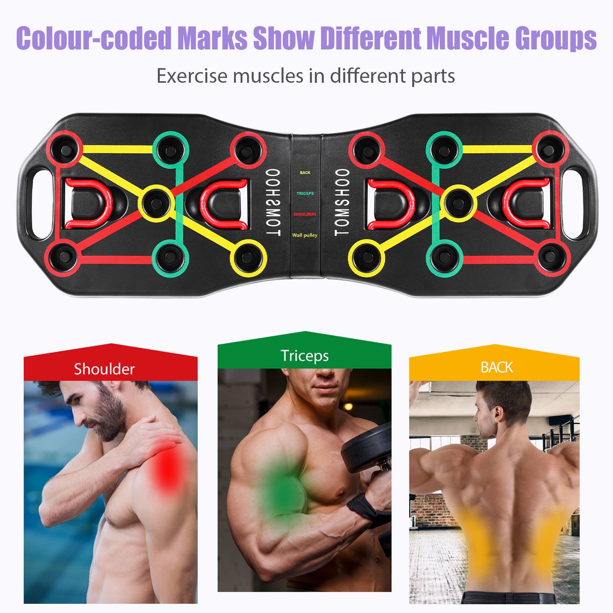 Muscle Training: Different color-coded areas allow you to strengthen the muscle groups of the chest, shoulders, back, abdomen and triceps and train each muscle precisely to create a strong and perfect body.