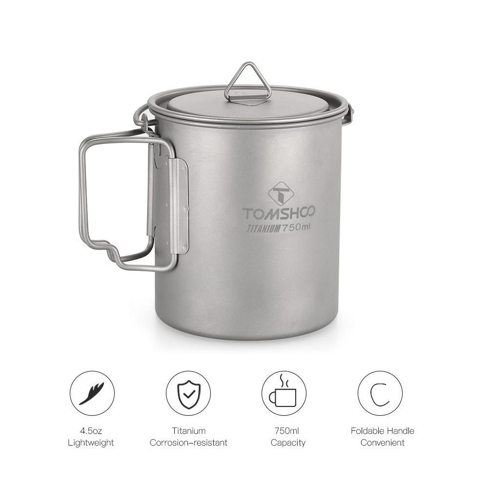 Buy TOMSHOO Ultralight 750ml Titanium Pot Portable Titanium Water Mug Cup with Lid and Foldable Handle Outdoor Camping Cooking Picnic in Nigeria