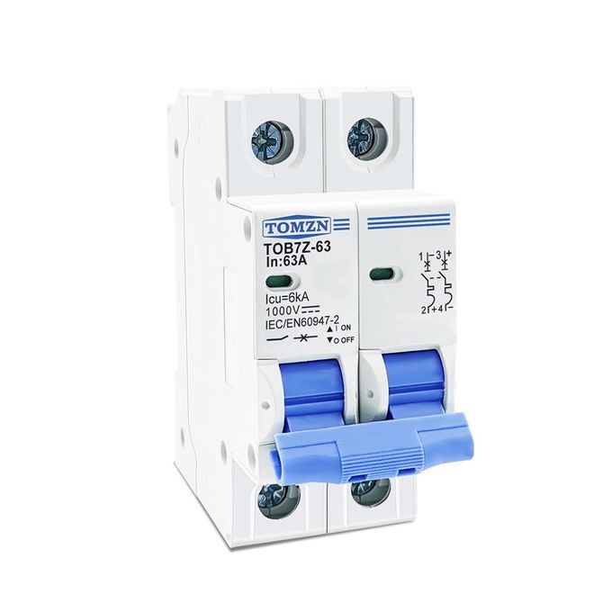 TOB7Z-63 circuit breaker is used for DC rated voltage to 1000V, rated current to 63A line, for overload and short circuit protection, and can also be used as an infrequent operation of the line.